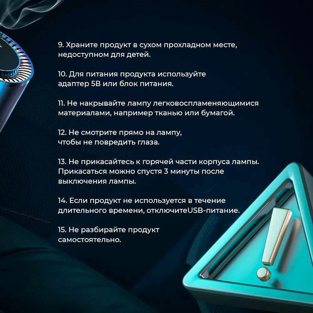 | Комплектация | Ароматизатор - 1 шт, Жидкость для ароматизатора - 1 шт, Инструкция - 1 шт, Сменный фильтр - 1 шт, кабель USB-Type C |