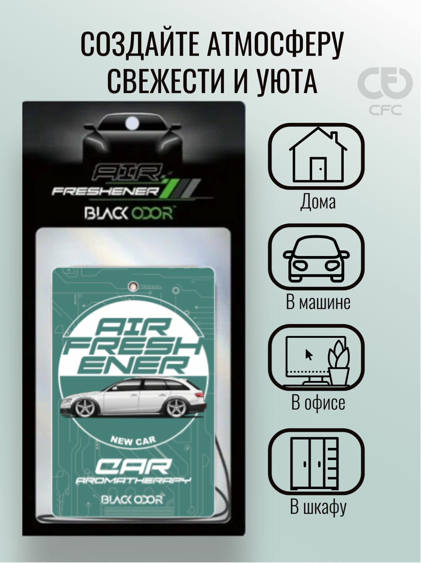 Автомобильный ароматизатор CFC Black Ice, 160мл, жидкий, универсальный, с зарядкой