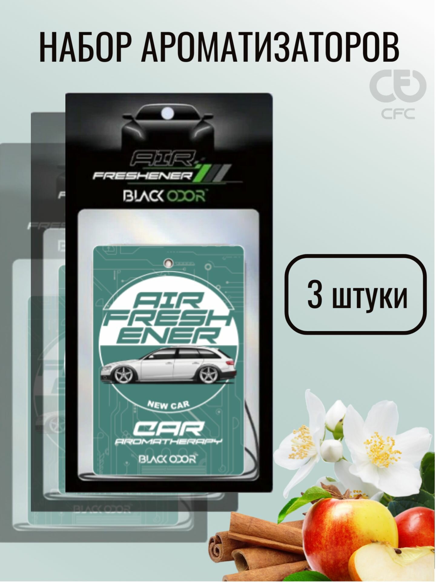 Ароматизатор для автомобиля Black Odor, набор 3 шт, Black Ice Черный лед