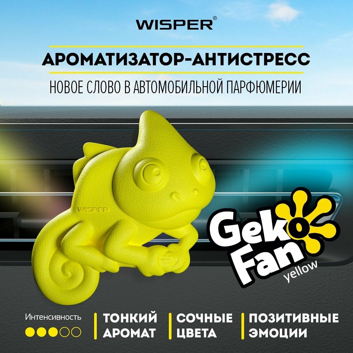 Купить Ароматизатор антистресс для автомобиля Wisper GekoFan Yellow, автопарфюм в машину, освежитель воздуха