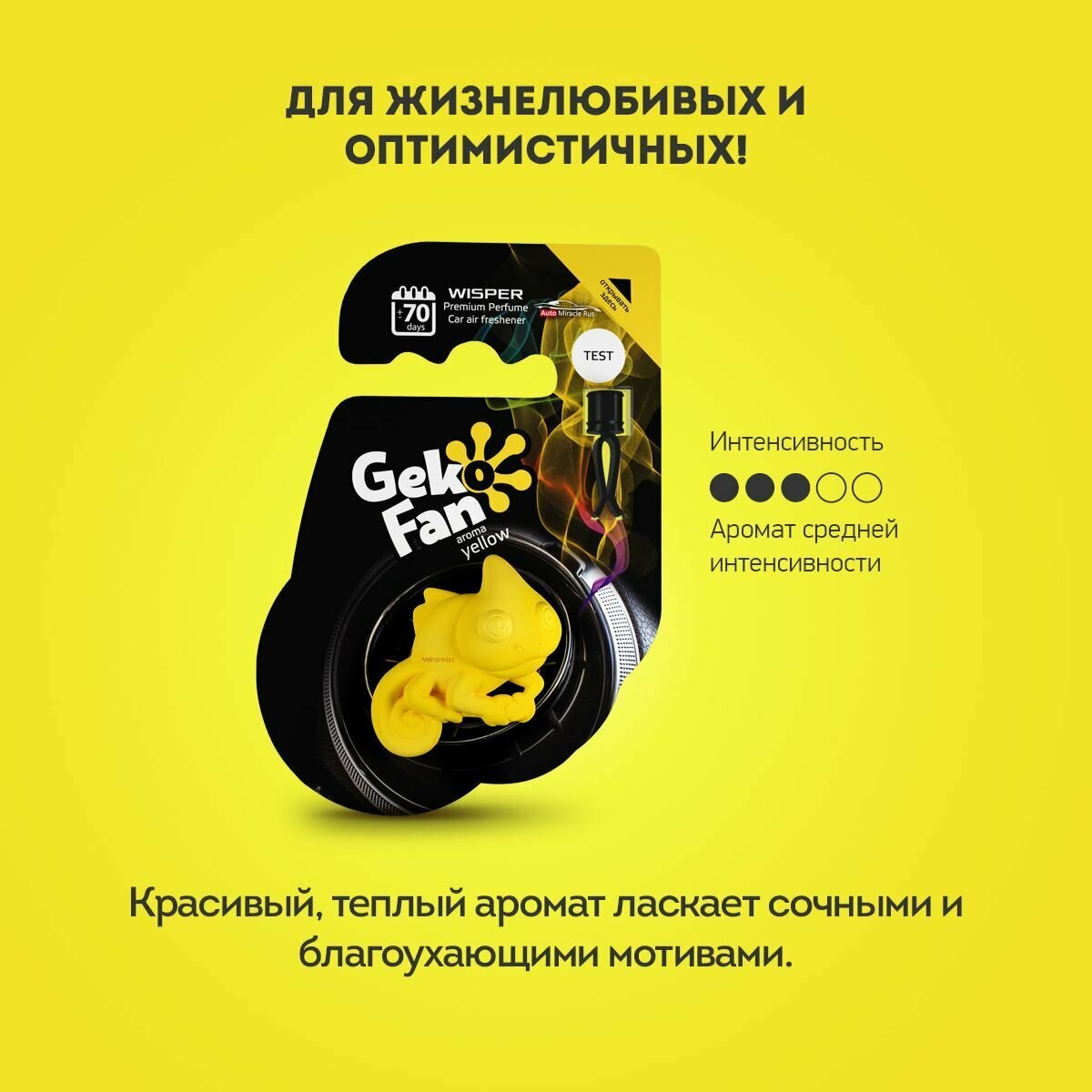 Ароматизатор антистресс для автомобиля Wisper GekoFan Yellow, автопарфюм в машину, освежитель воздуха интересное: