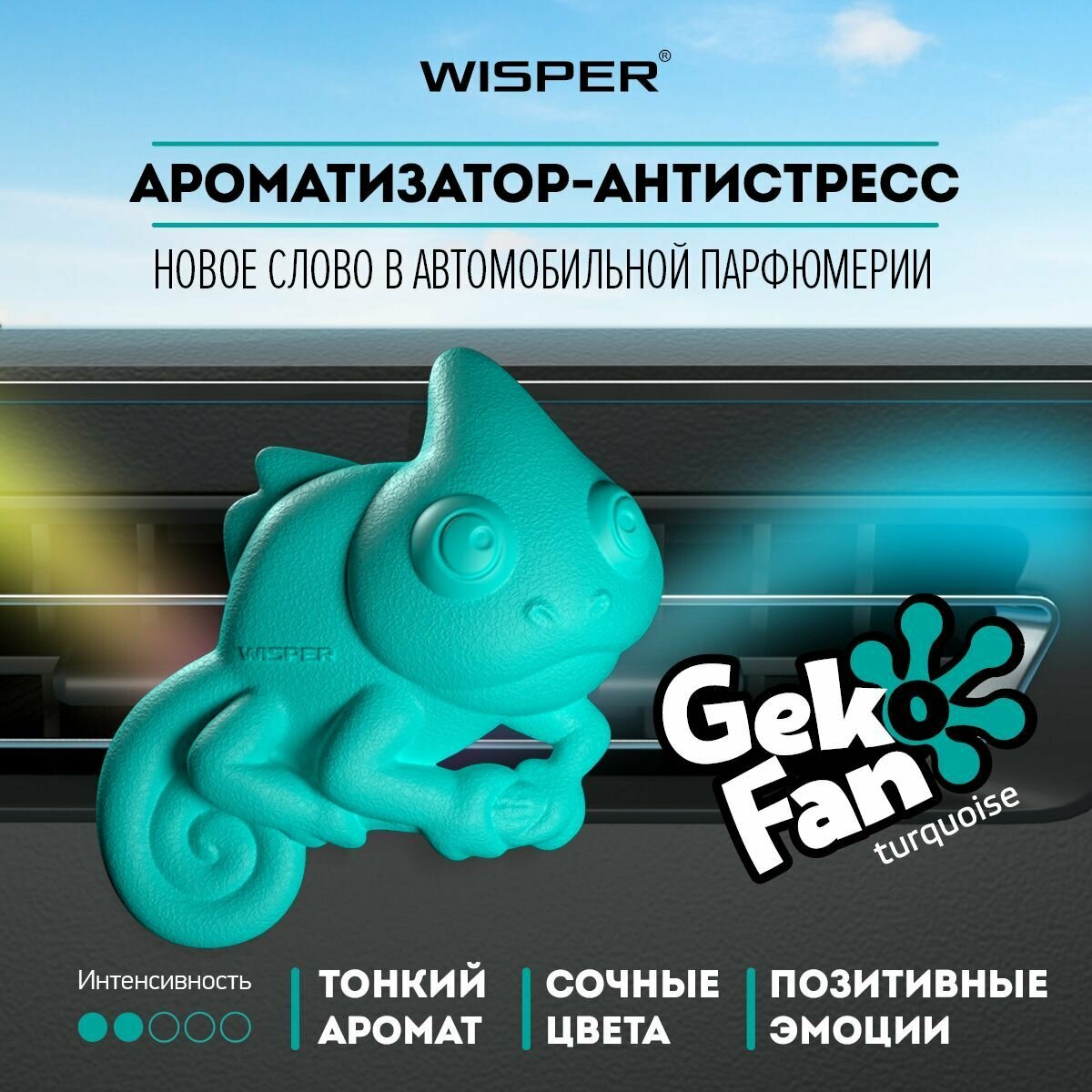 Ароматизатор антистресс для автомобиля Wisper GekoFan Turquoise, автопарфюм в машину, освежитель воздуха интересное: