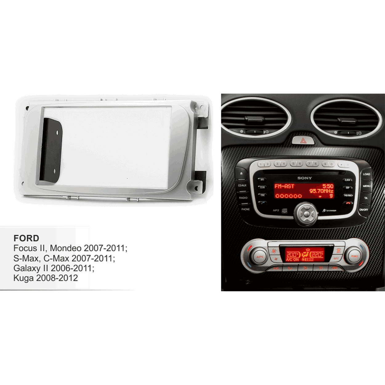 Переходная рамка для Ford Mondeo 2007+, C-Max 2 Din, пластик, серебро матовая. интересное: