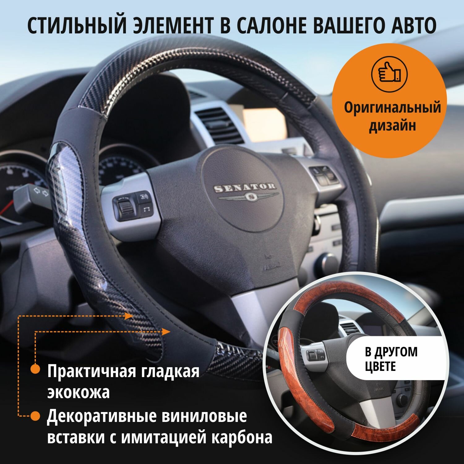 Оплетка на руль 37-39 см SENATOR Oregon "М" чехол на руль автомобиля интересное: