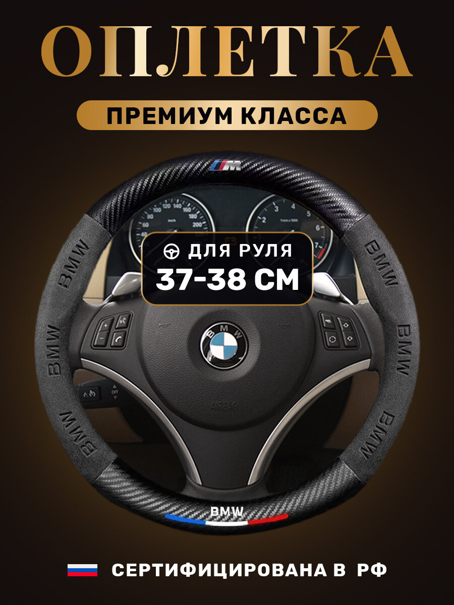Чехол-оплетка на руль WBRUS, с логотипом BMW, черный, для руля 36-38 см
