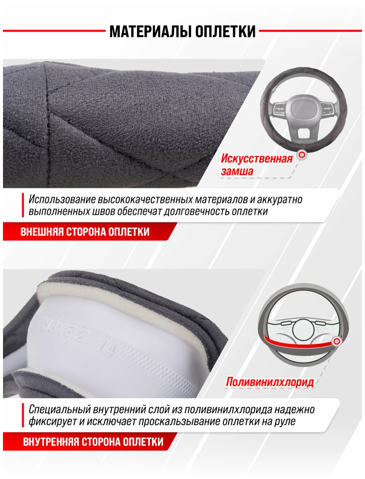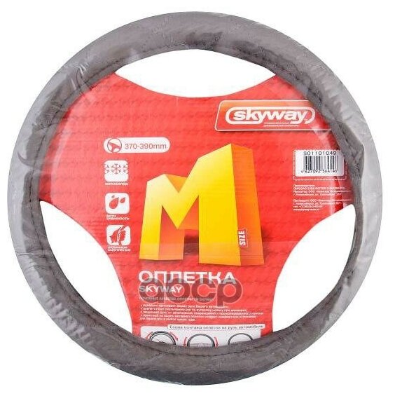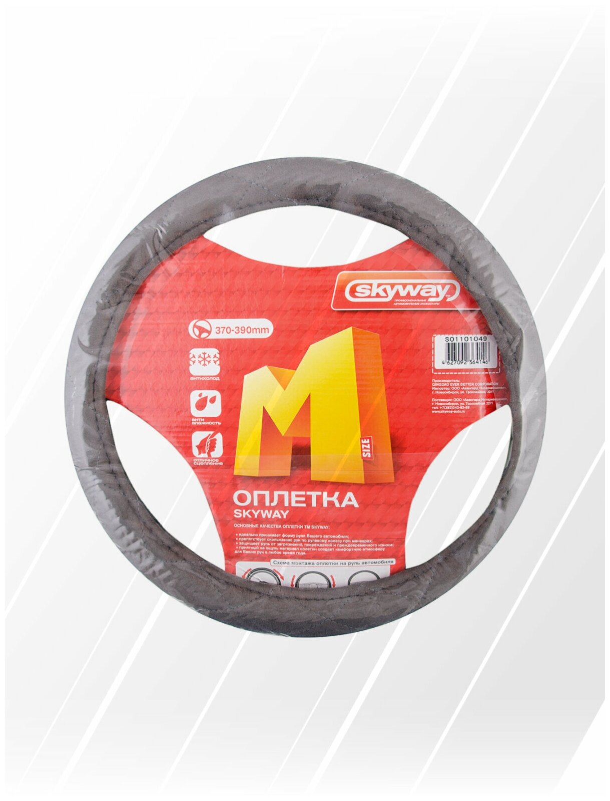 Оплетка на руль Top-12 SKYWAY M (37-39) серый экокожа, S01102501