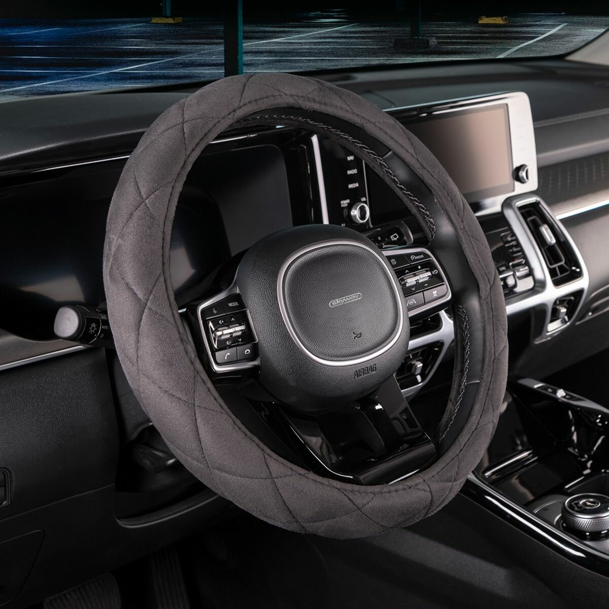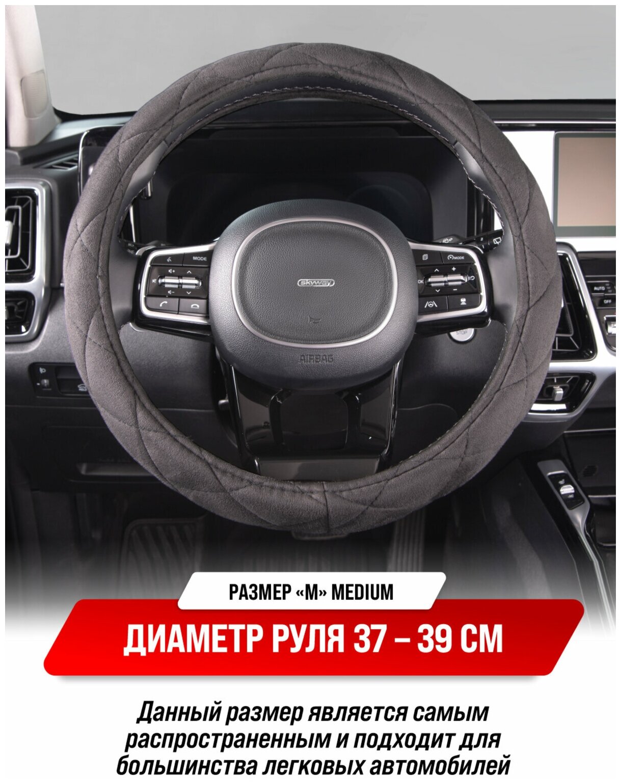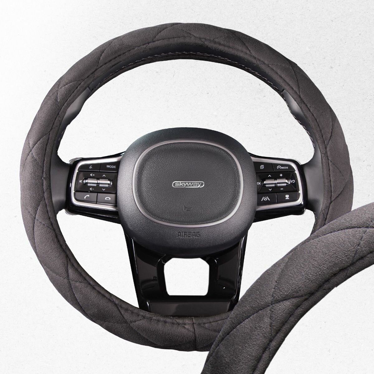 Оплётка руля SKYWAY замша Черная с прострочкой ECO (M)