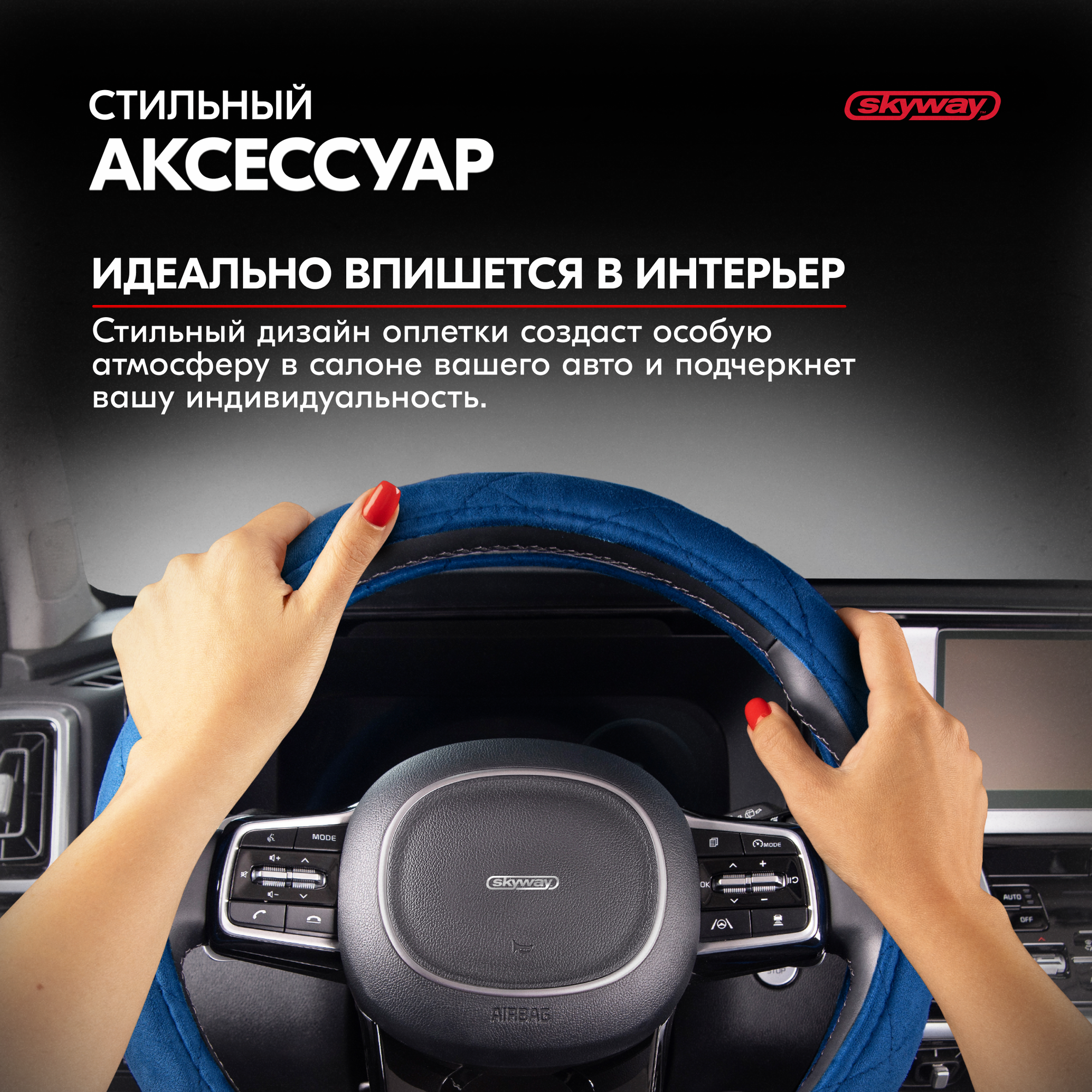 СохранитьОплетка руля SKYWAY Hit-1, размер M, диаметр руля 37/38/39см, синий алькантара, S01101053 интересное: