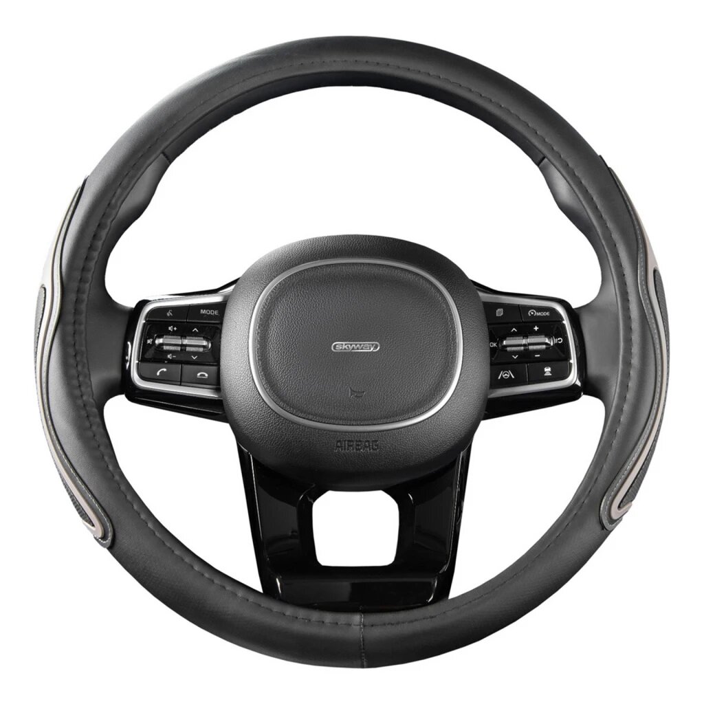 Оплетка на руль Top-12 SKYWAY M (37-39) серый экокожа, S01102501