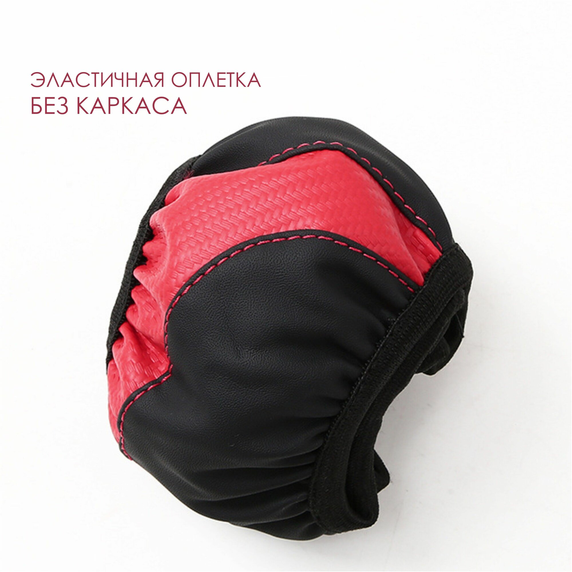 Оплетка (чехол) на руль бескаркасная 37-38 см Volkswagen Bora 1998 - 2005 экокожа, черная, с красной строчкой