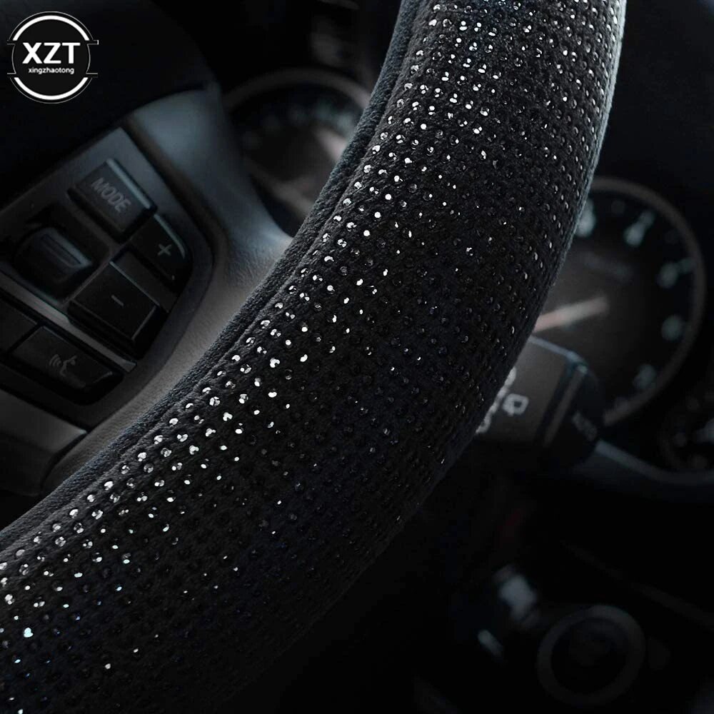 Чехол на руль со стразами 14,5-15 дюймов и сверкающим кристаллом и бриллиантами, дышащая противоскользящая защита руля автомобиля, black