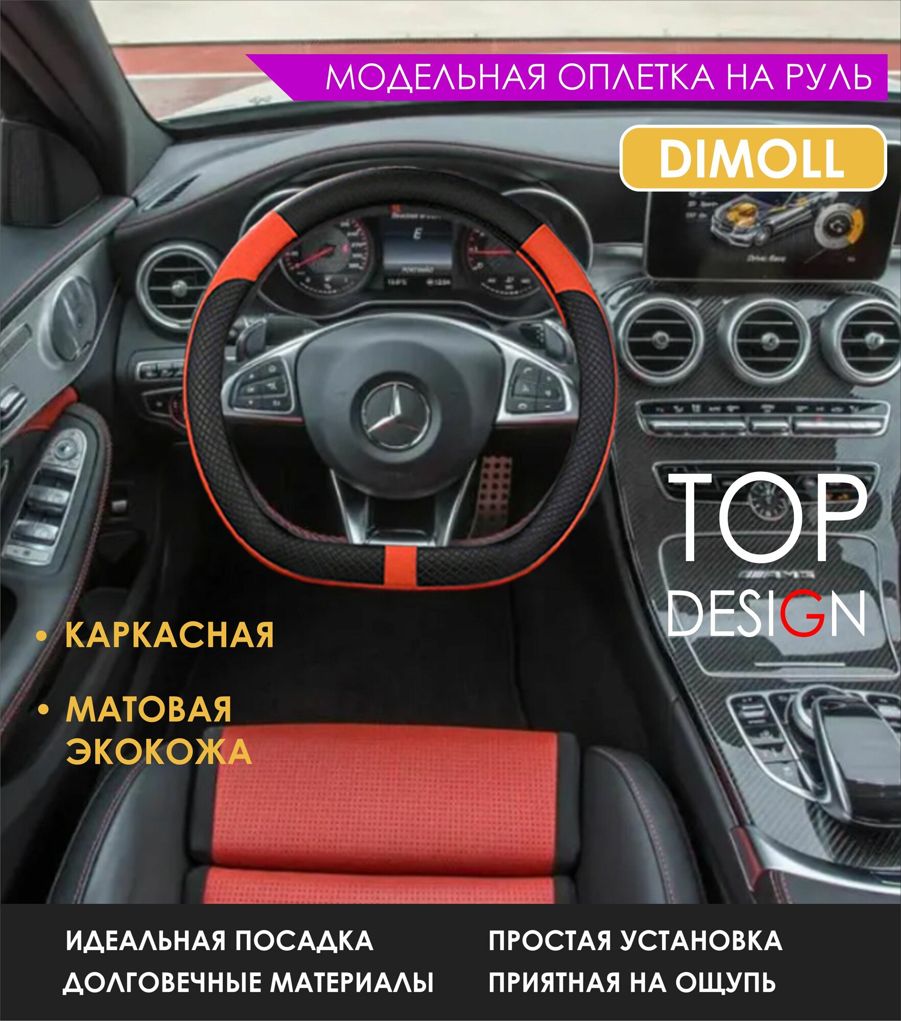 Оплетка Mercedes AMG GT I 2014 - н. в. / Чехол на D-руль экокожа черный / рыжий, 37-38см