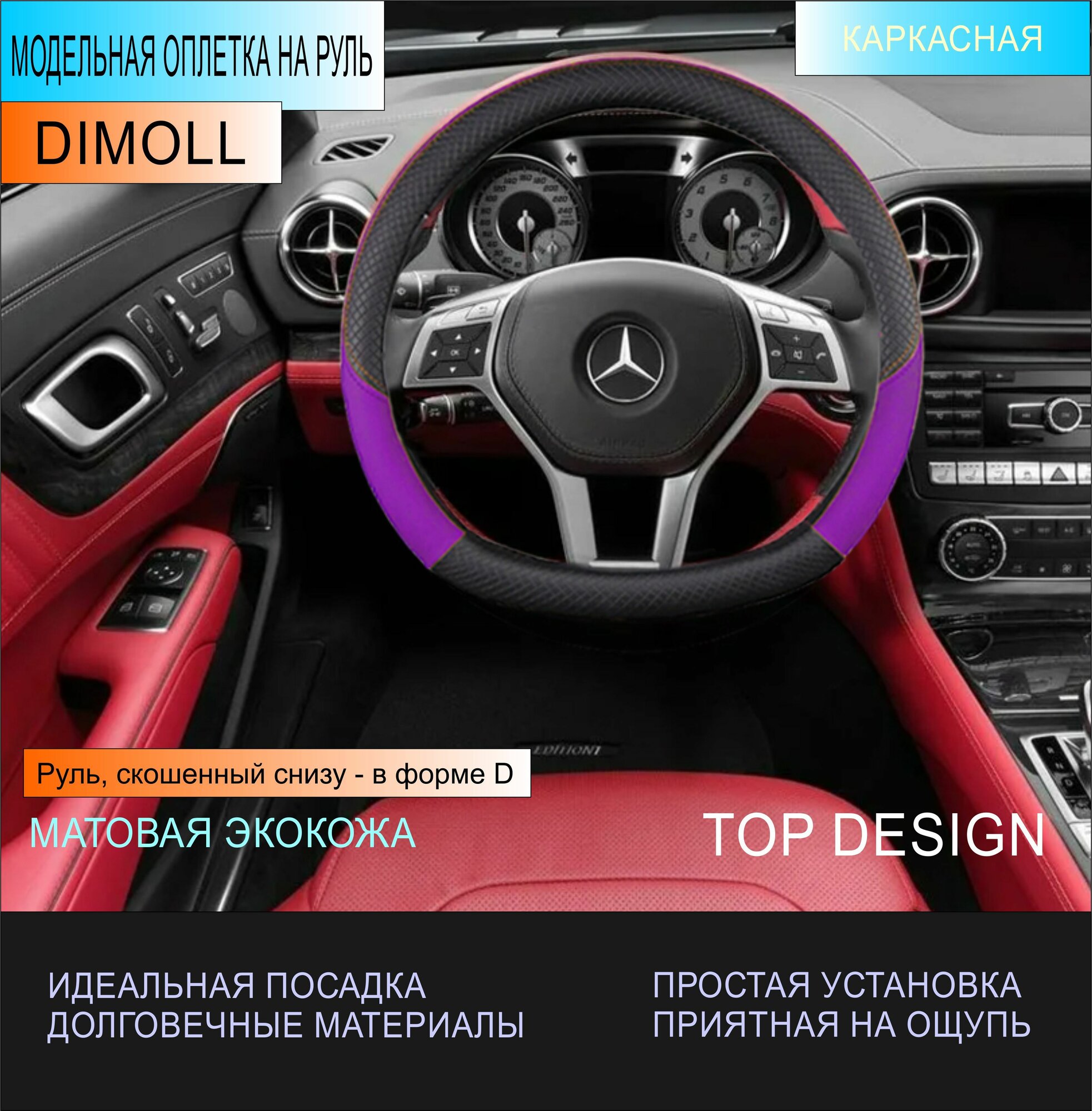 СохранитьОплетка Mercedes CLS AMG С257 2018 - н. в. / Чехол на руль экокожа черный / фиолетовый (D-образный) 37-38 см интересное: