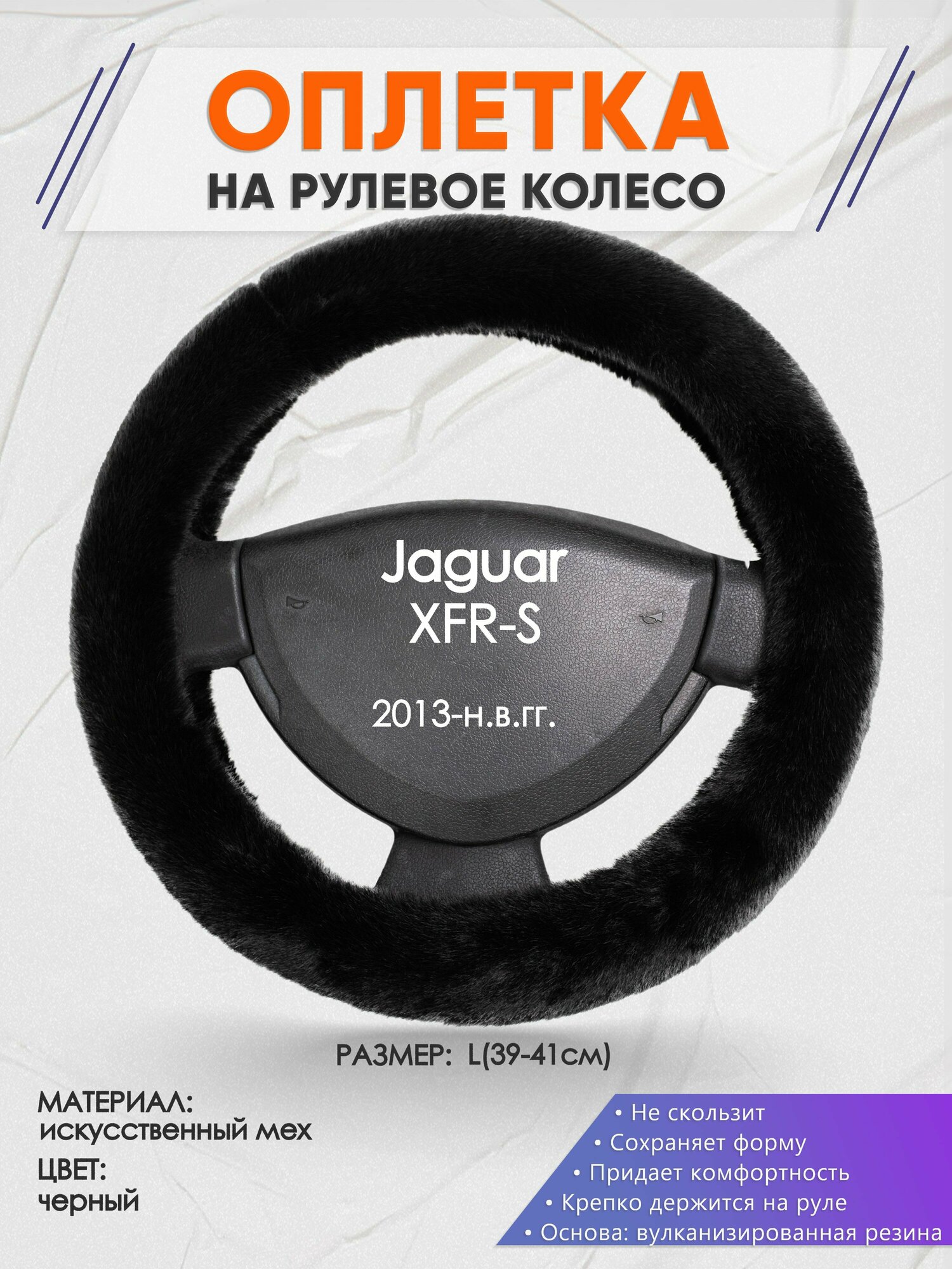 Оплетка на руль для Jaguar XFR-S(Ягуар иксфр) 2013-н. в, L(39-41см), Искусственный мех 39