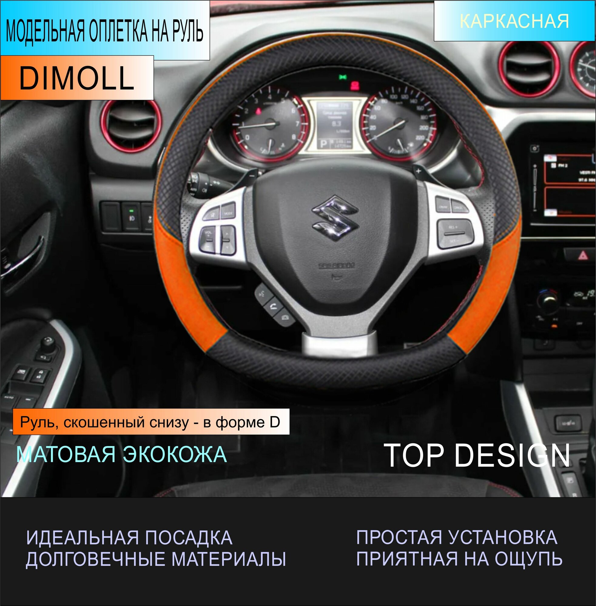 Купить Оплетка Suzuki Swift 5 2016 - 2023 / Чехол на руль экокожа черный / оранжевый (D-образный) 37-38 см