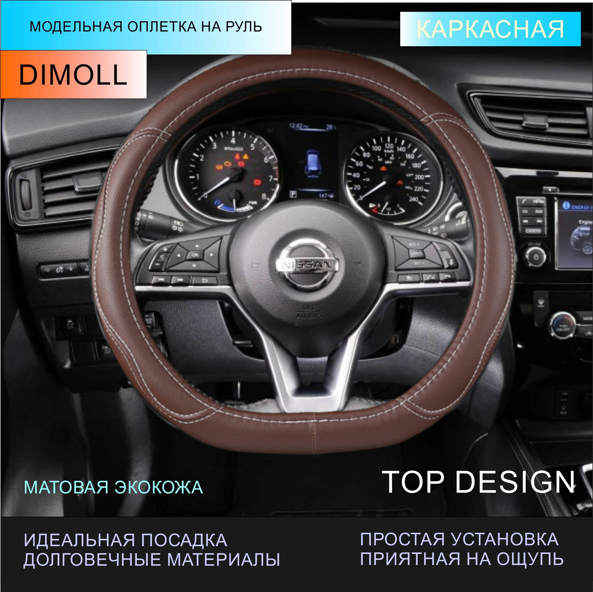 СохранитьОплетка Nissan Note 3 2020 - н. в. / Чехол на руль экокожа коричневый (D-образный) 37-38 см интересное: