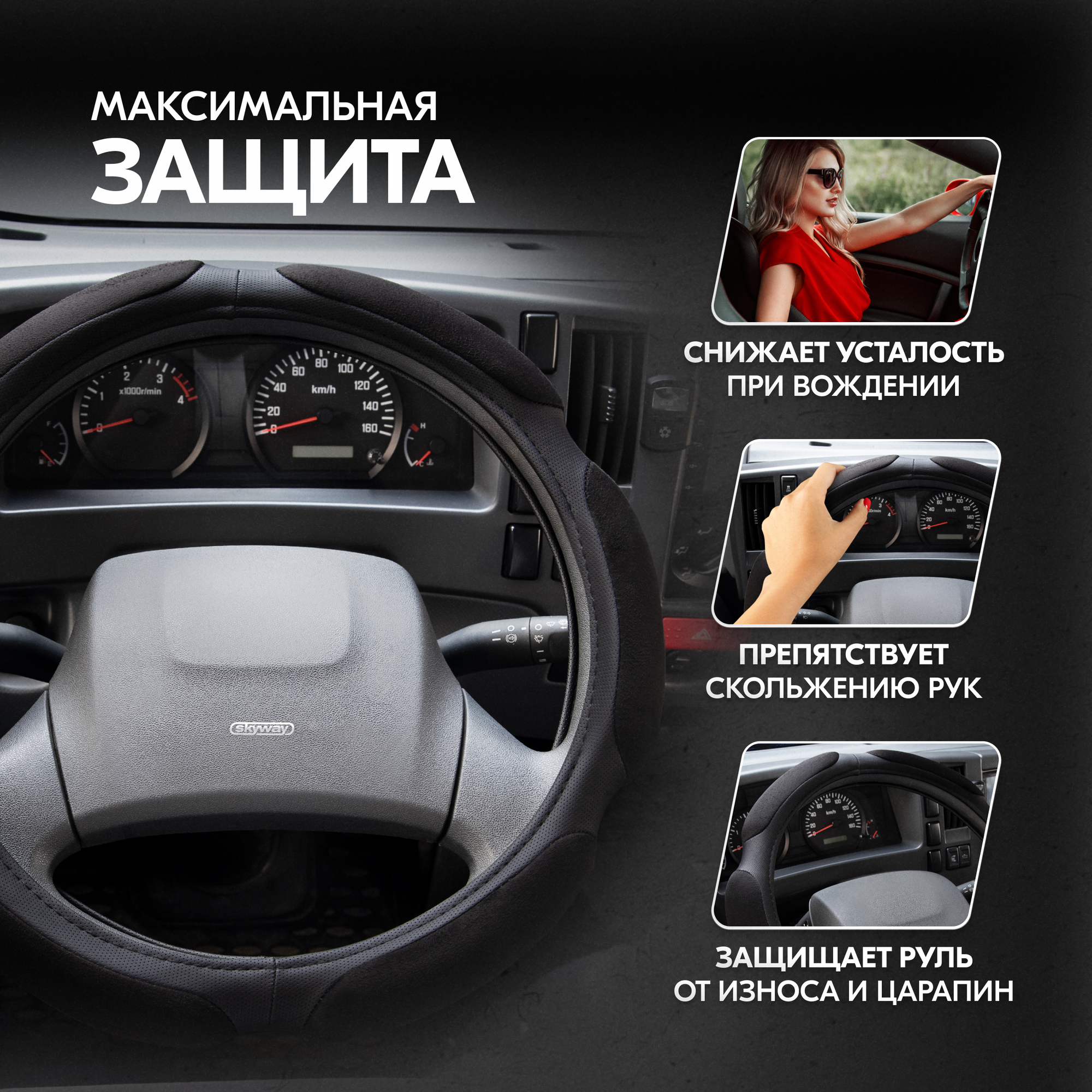 Оплетка SKYWAY Sponge Air на руль 39/40/41см, черный, алькантара, 6 подушечек, S01101062 интересное: