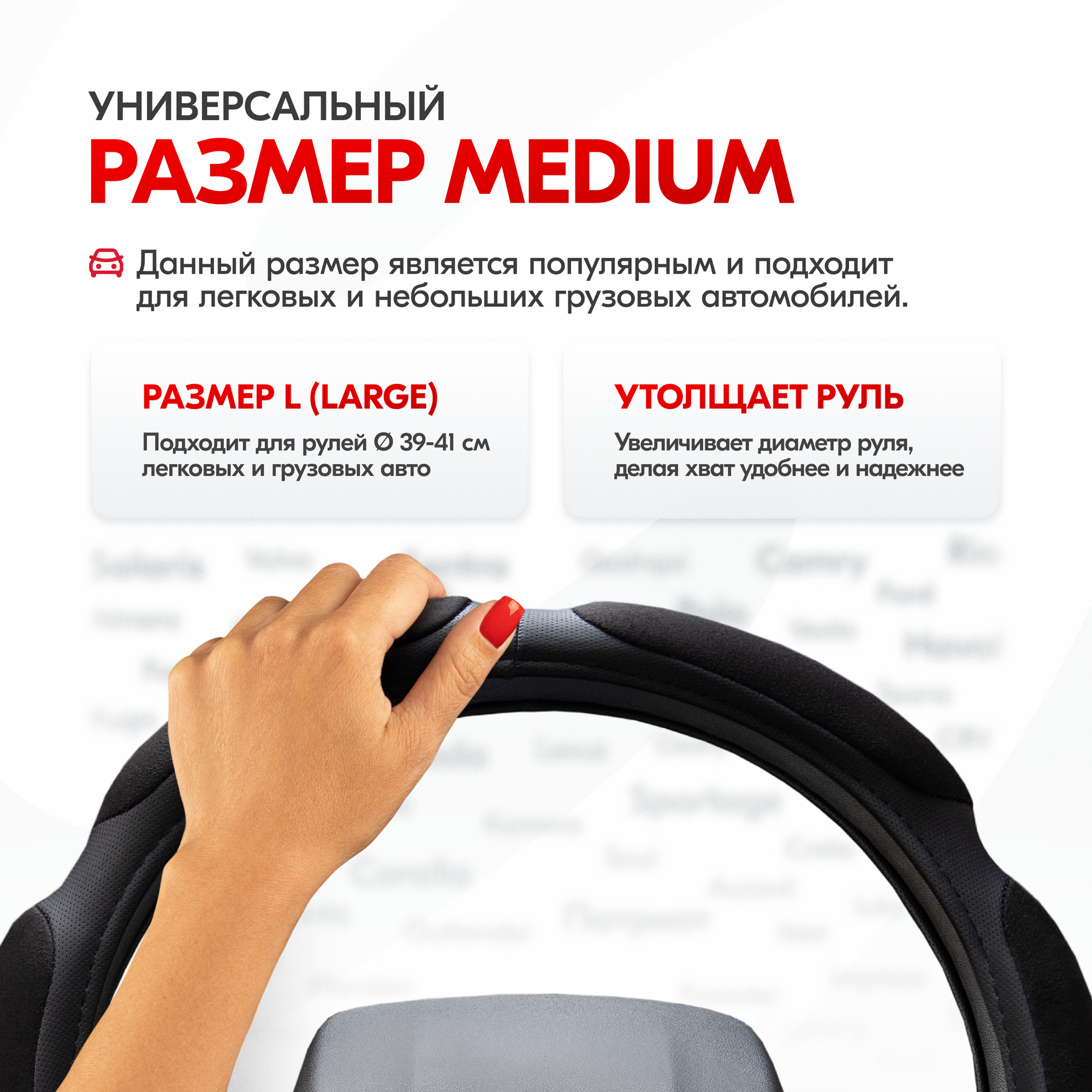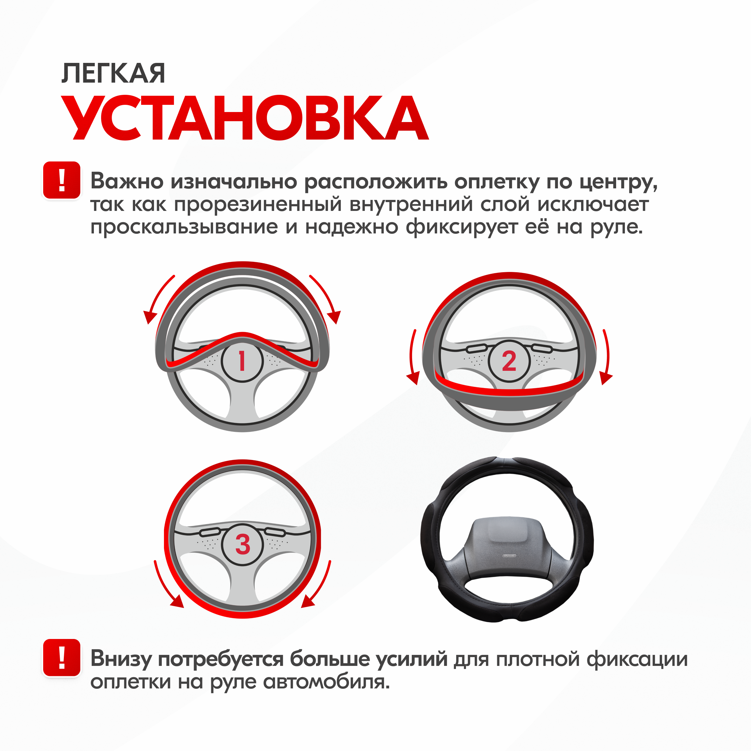 | Дополнительная информация | Рекомендации производителей: выбирайте оплётку под размер вашего рулевого колеса. Неверно выбранный размер может стать причиной проскальзывания оплётки, привести к невозможности снять или надеть её на руль. |