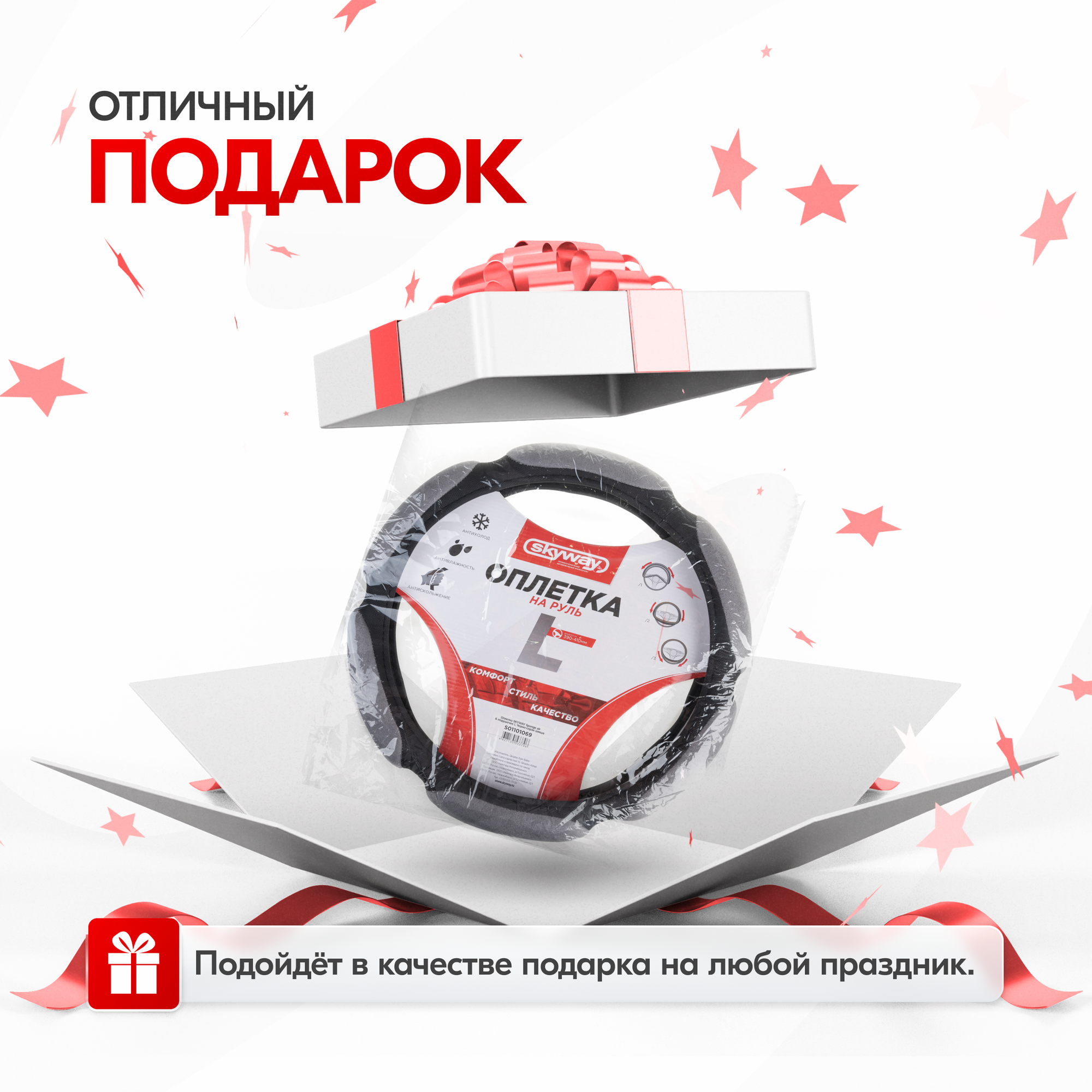 Оплетка на руль Sponge air SKYWAY L (39/40/41) черный; серый алькантара 6 подушечек, S01101069 интересное:
