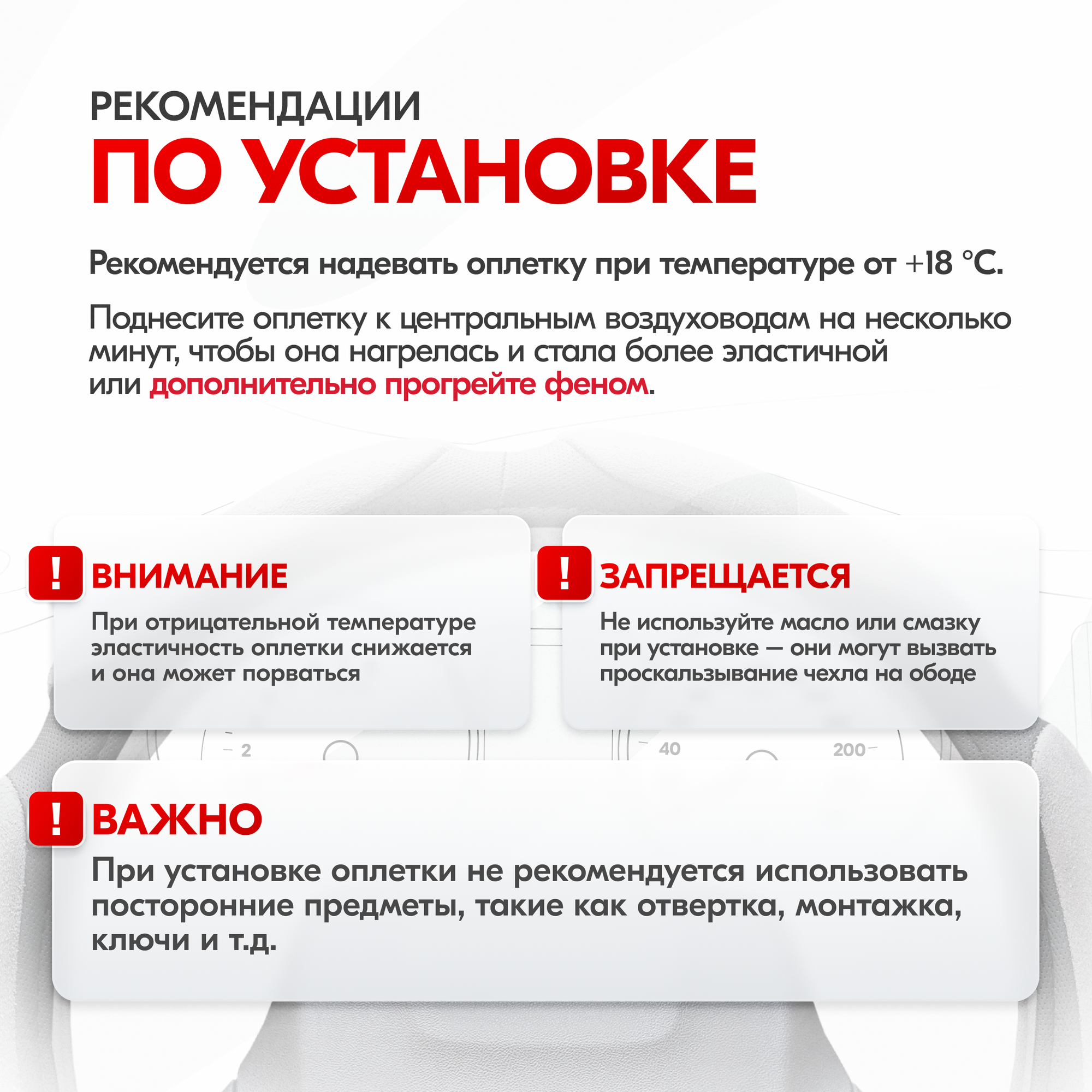 | Дополнительная информация | Рекомендации производителей: выбирайте оплётку под размер вашего рулевого колеса. Неверно выбранный размер может стать причиной проскальзывания оплётки, привести к невозможности снять или надеть её на руль. |