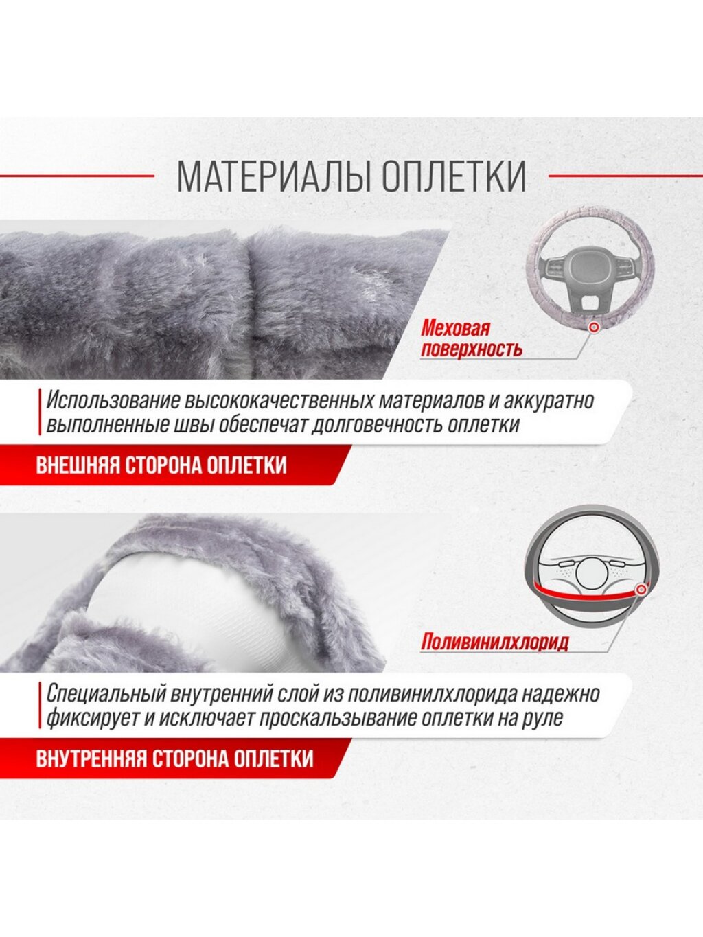 Оплётка руля Skyway Arctic-2 Искусственный мех серый M интересное: