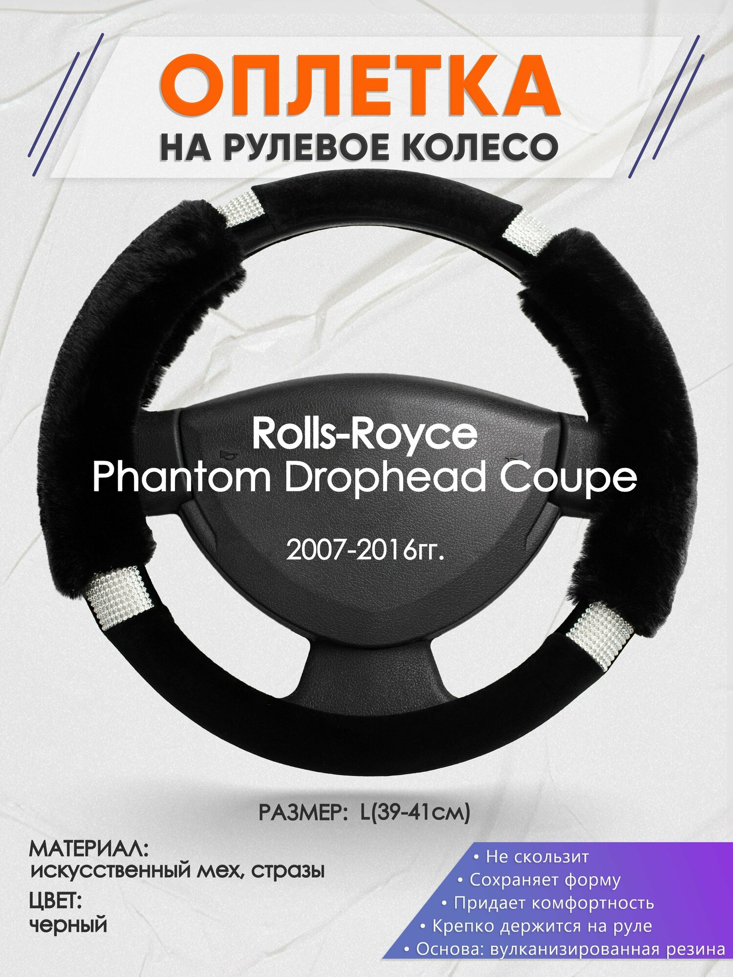 Оплетка на руль для Rolls-Royce Phantom Drophead Coupe(РоллсРойс Фантом) 2007-2016, L(39-41см), Искусственный мех 39