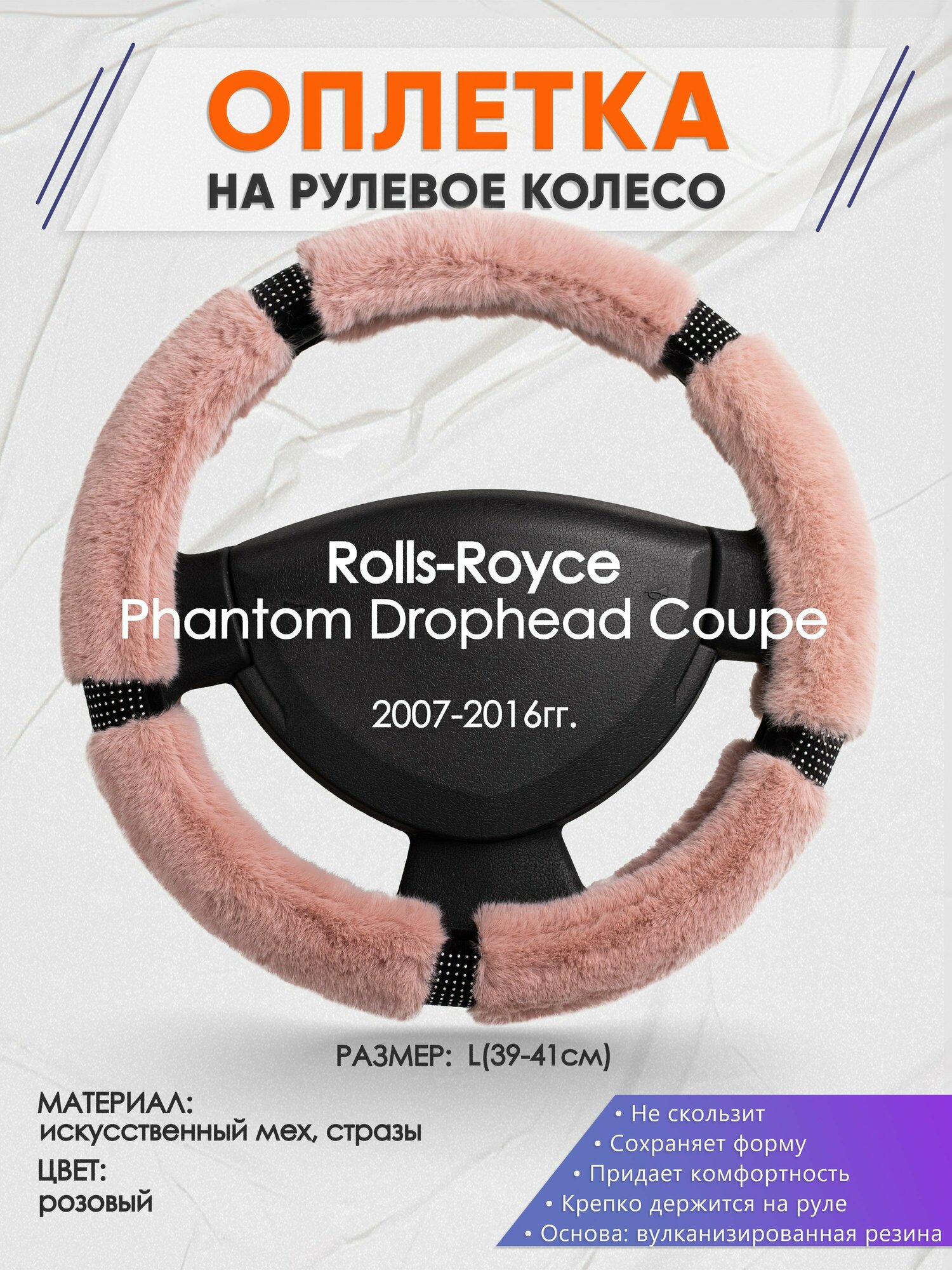 Оплетка на руль для Rolls-Royce Phantom Drophead Coupe(РоллсРойс Фантом) 2007-2016, L(39-41см), Искусственный мех 41