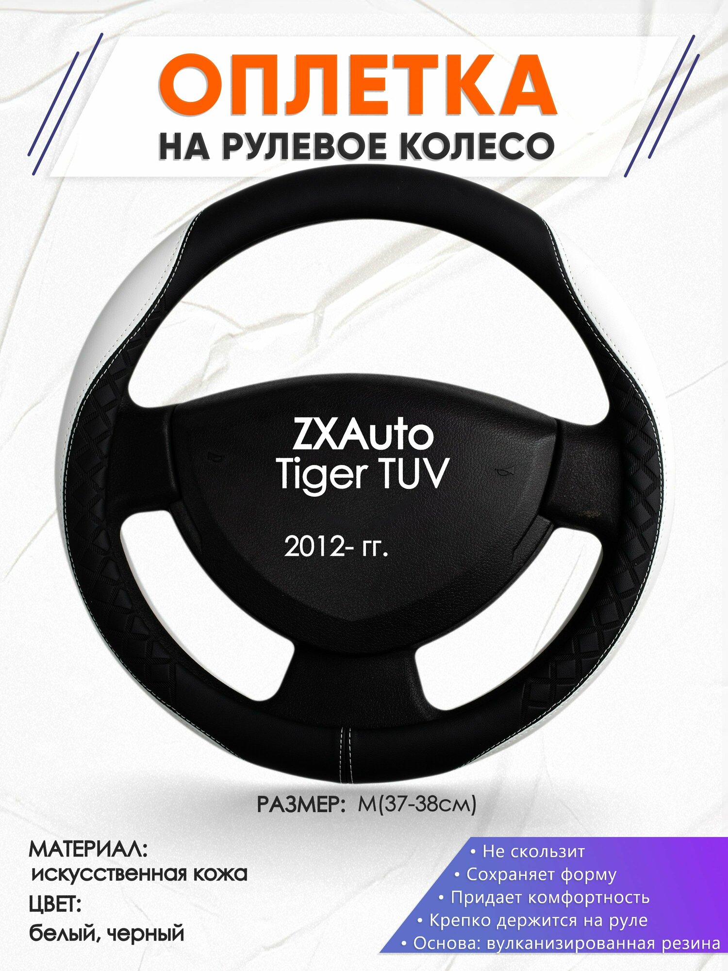 Оплетка наруль для ZXAuto Tiger TUV(Зет Икс Тайгер) 2012-н. в, годов выпуска, размер M(37-38см), Искусственная кожа 60