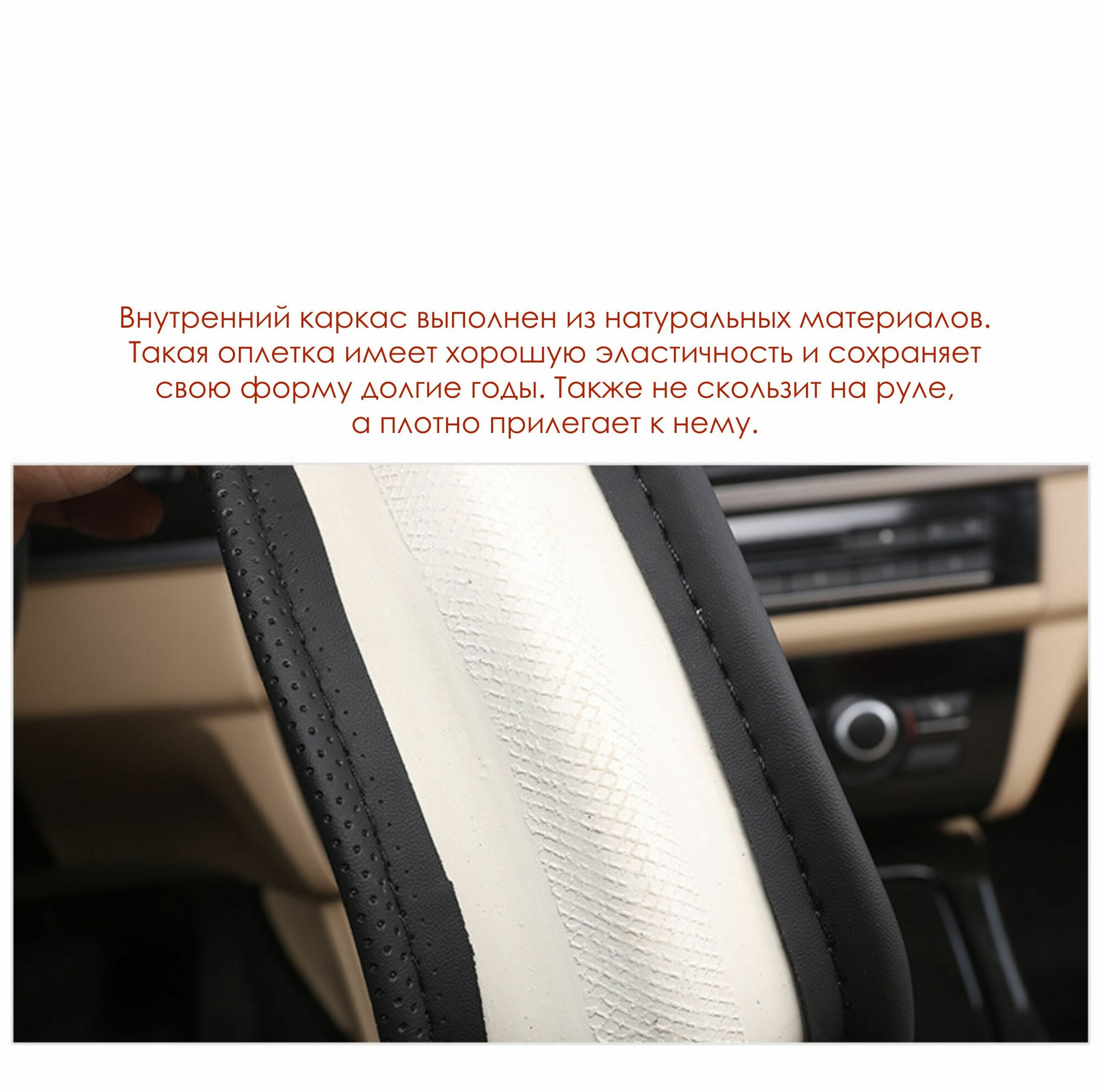 Оплетка CAMC AH3251-2 / Чехол на руль экокожа черный / бордовый (каркасный) 44-45 см