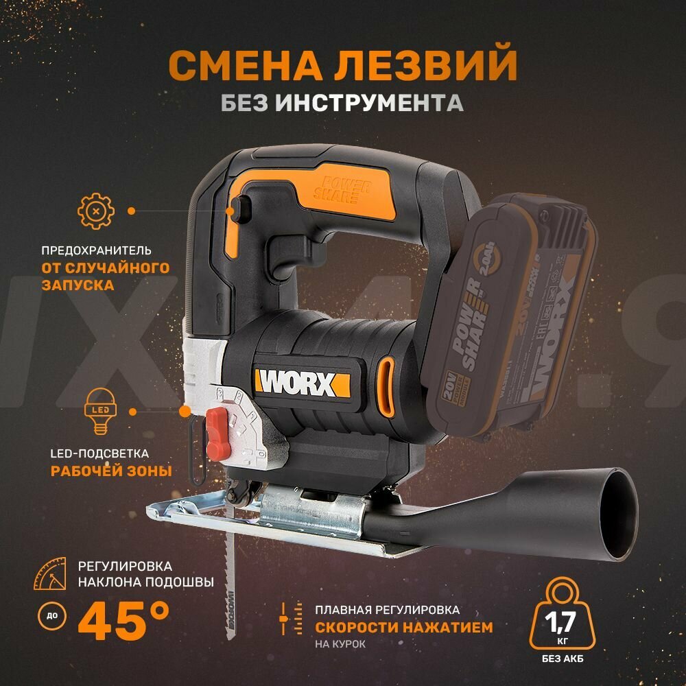 Аккумуляторный лобзик WORX WX543.9