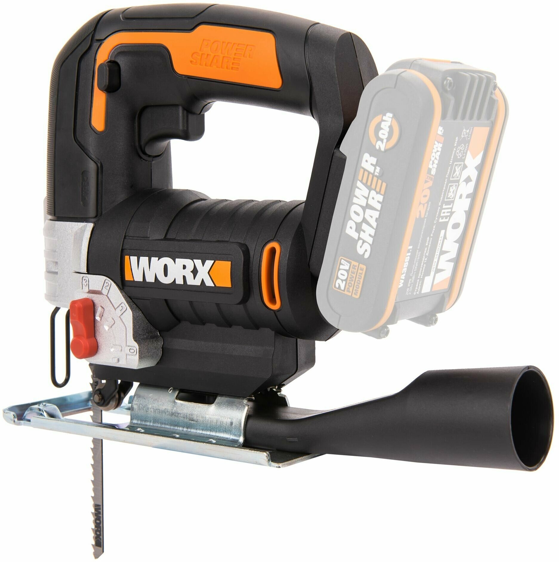 Лобзик аккумуляторный WORX WX543.9, 24 мм, 20 В, без АКБ и ЗУ, коробка