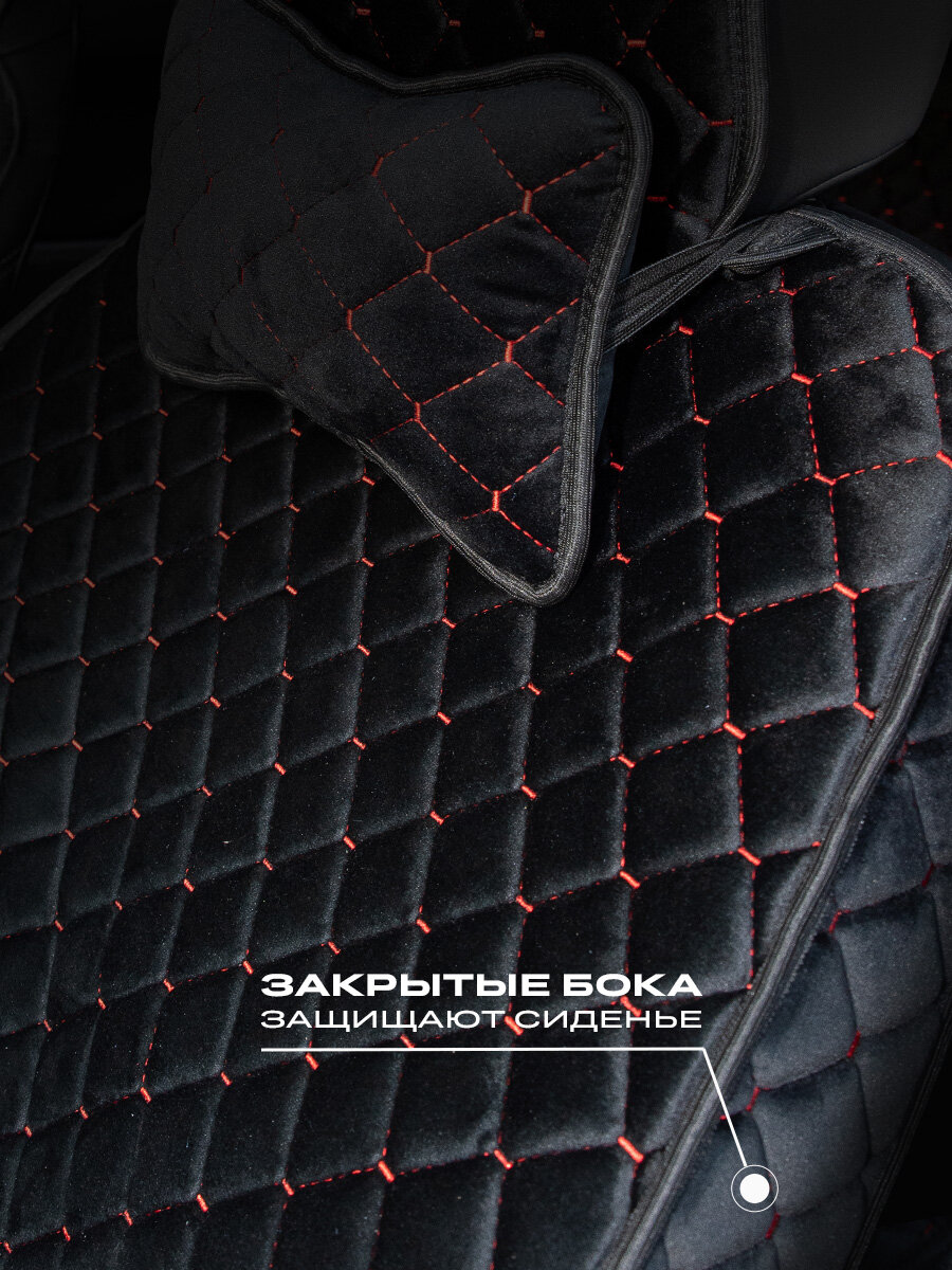 Чехлы на передние сиденья "Велюр", с подушками в подарок, красный, 2 шт