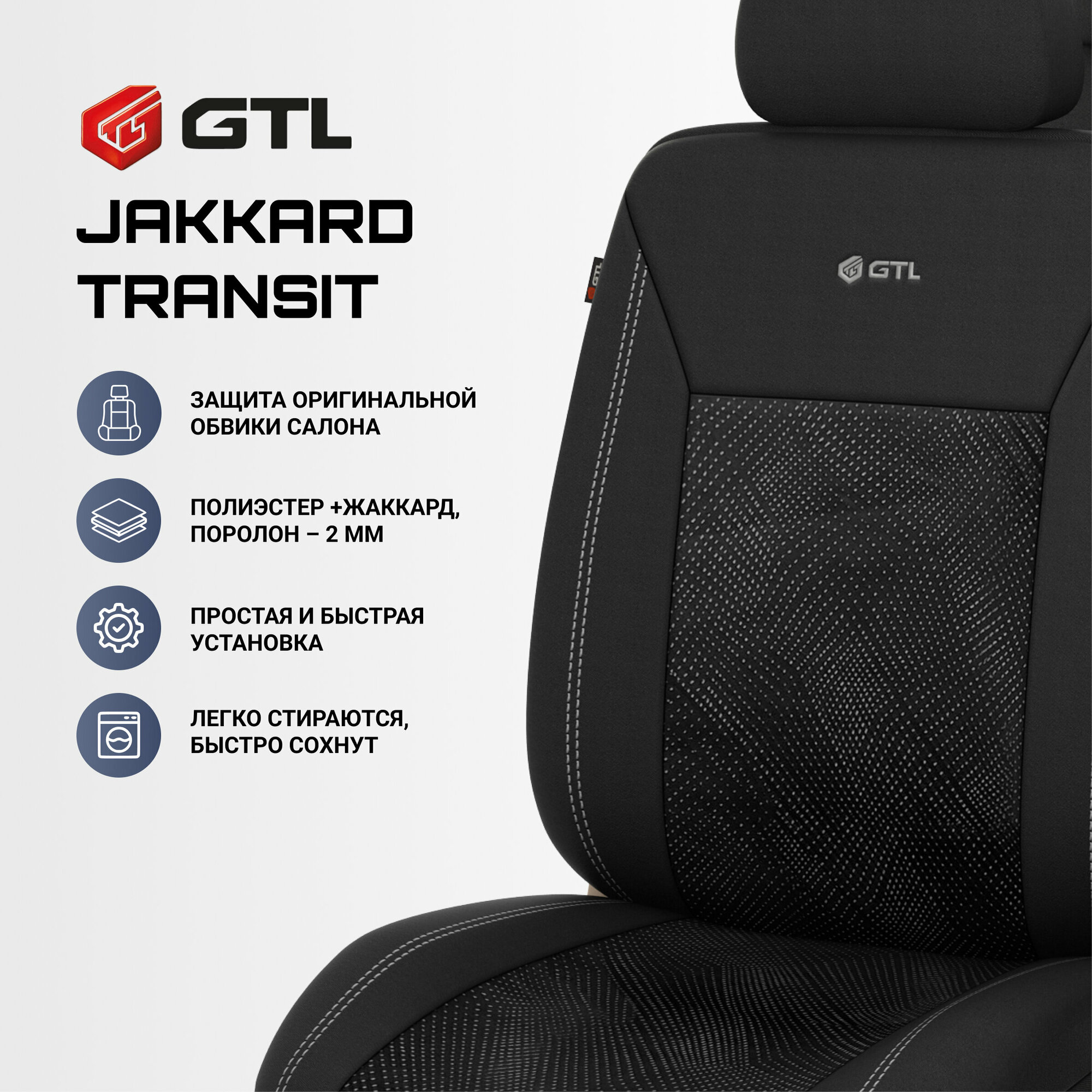 Чехлы GTL Jakkard TRANSIT (Черный), полиэстер + жаккард 132683 интересное: