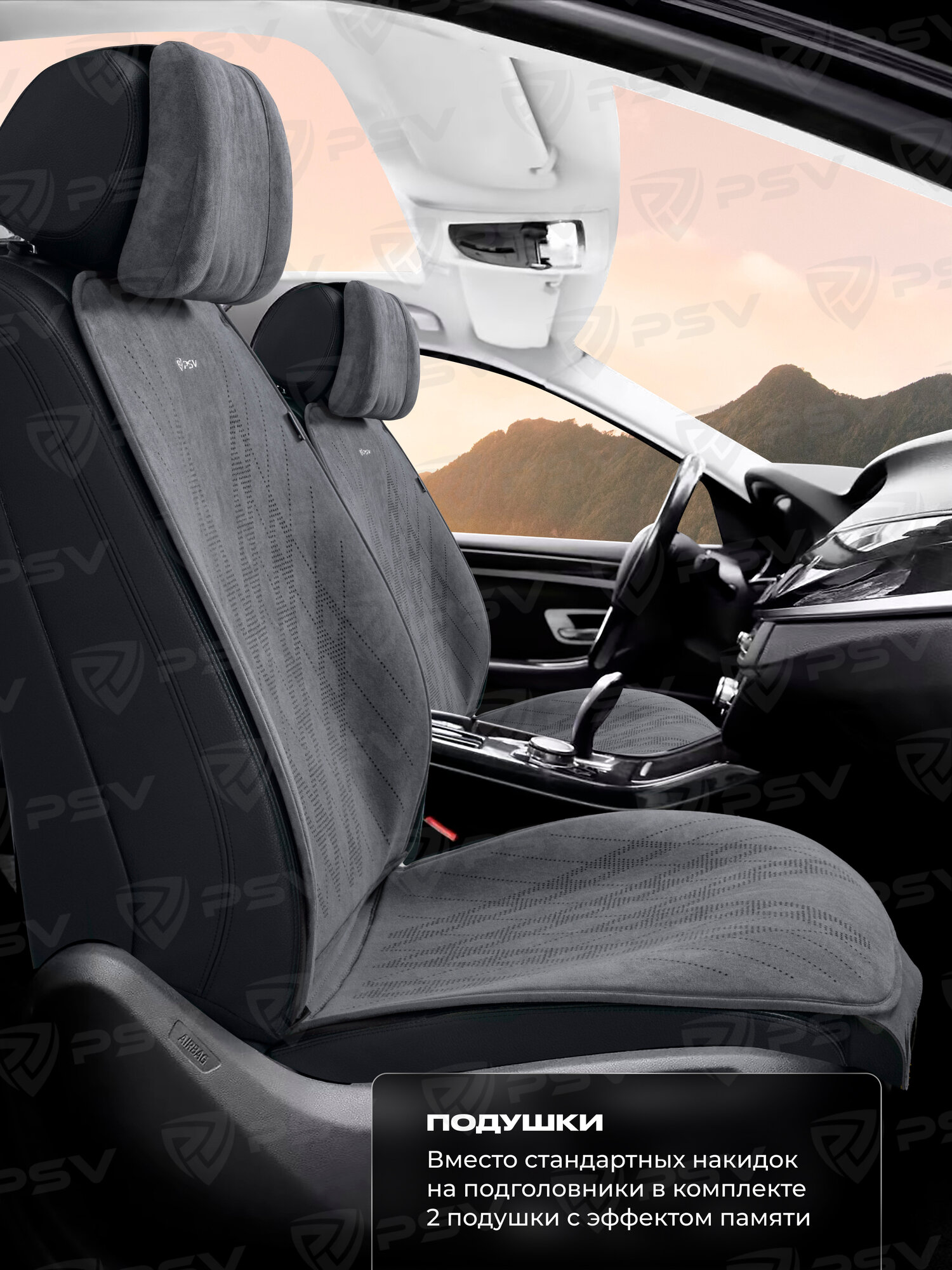 Купить Накидки чехлы на сиденья из алькантары в машину автомобильные универсальные на весь салон премиум PSV Atom (Т. серый)