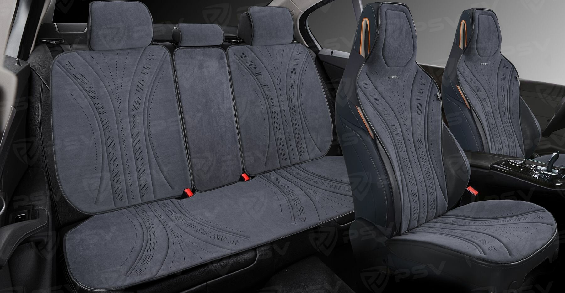 Накидки чехлы на сиденья из алькантары в машину автомобильные универсальные на весь салон премиум PSV Atom (Т. серый)