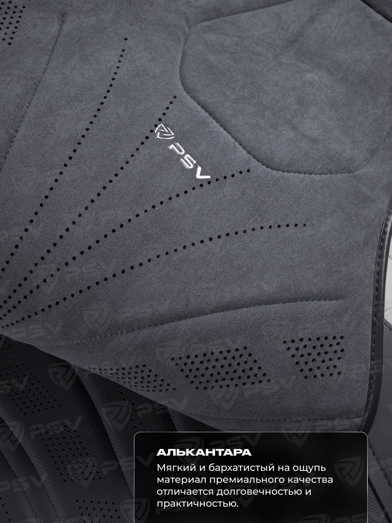 Купить Накидки чехлы на сиденья из алькантары в машину автомобильные универсальные на весь салон премиум PSV Uragan (Т. серый)