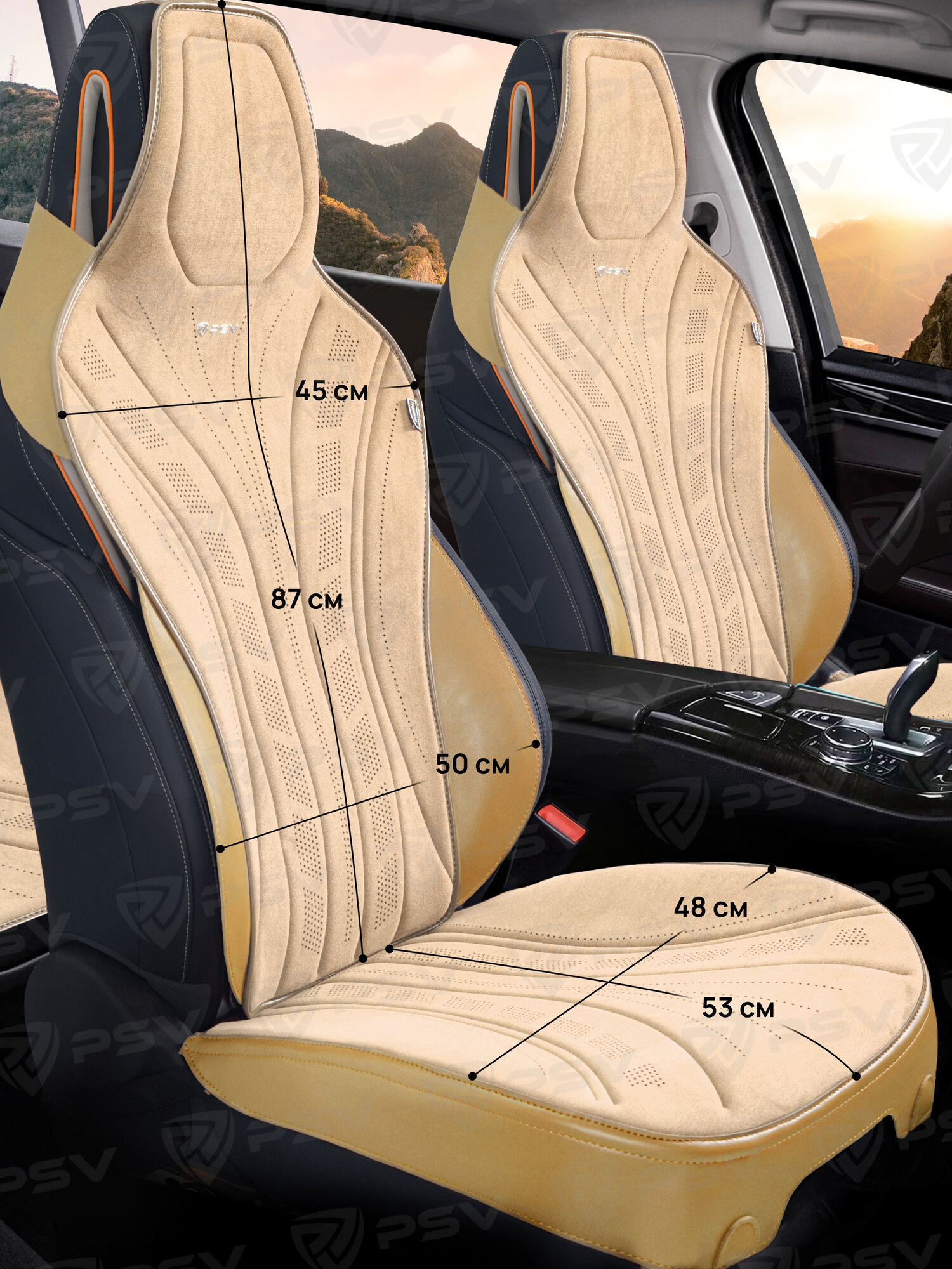 Купить Накидки чехлы на сиденья из алькантары в машину автомобильные универсальные на весь салон премиум PSV Uragan (Бежевый)