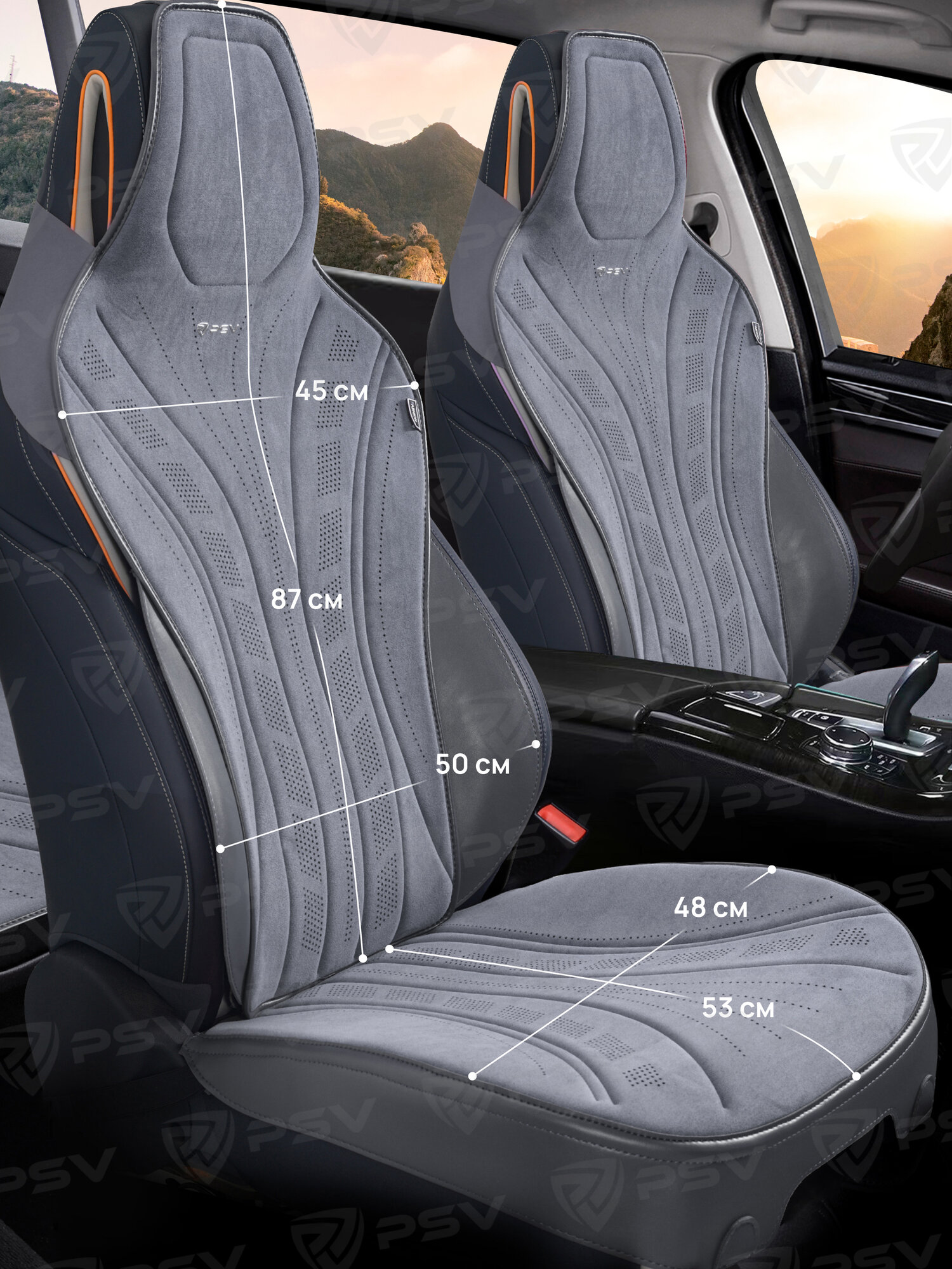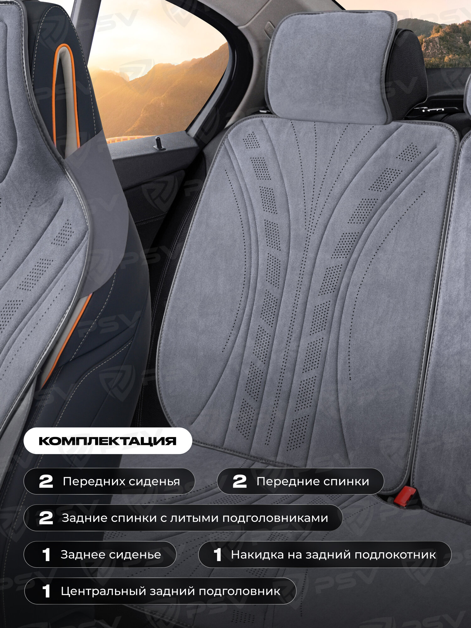 Купить Накидки чехлы на сиденья из алькантары в машину автомобильные универсальные на весь салон премиум PSV Uragan (Серый)