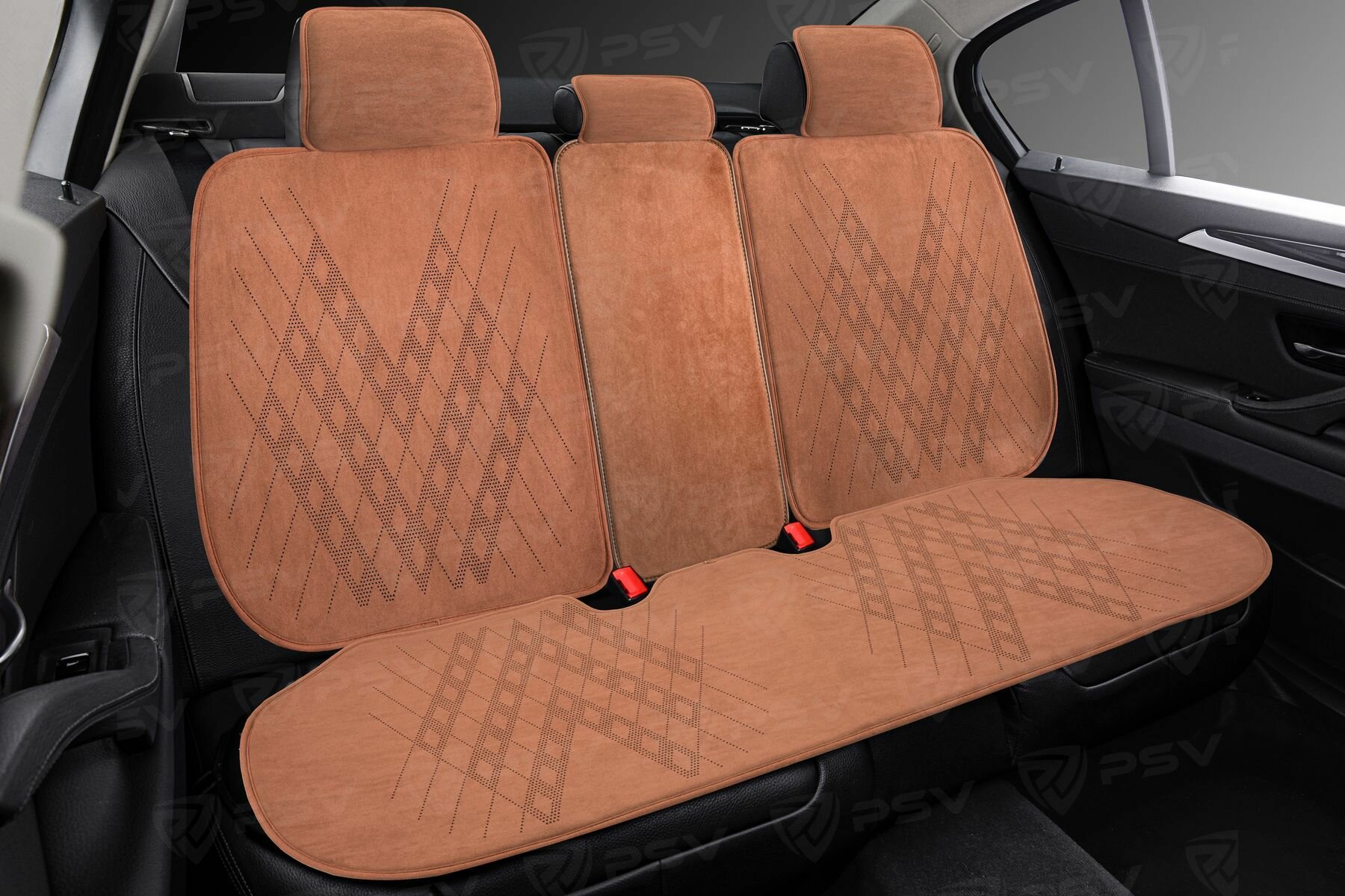 Накидки чехлы на сиденья из алькантары в машину автомобильные универсальные на весь салон премиум PSV Atom (Т. коричневый)