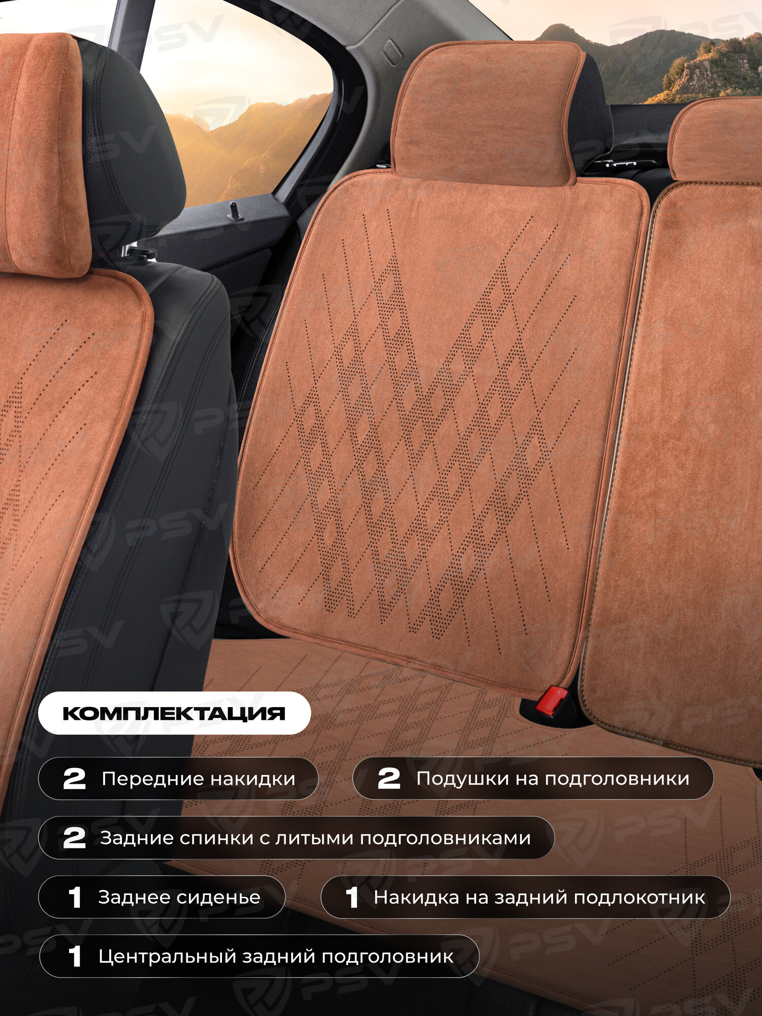 СохранитьНакидки чехлы на сиденья из алькантары в машину автомобильные универсальные на весь салон премиум PSV Atom (Коричневый) интересное: