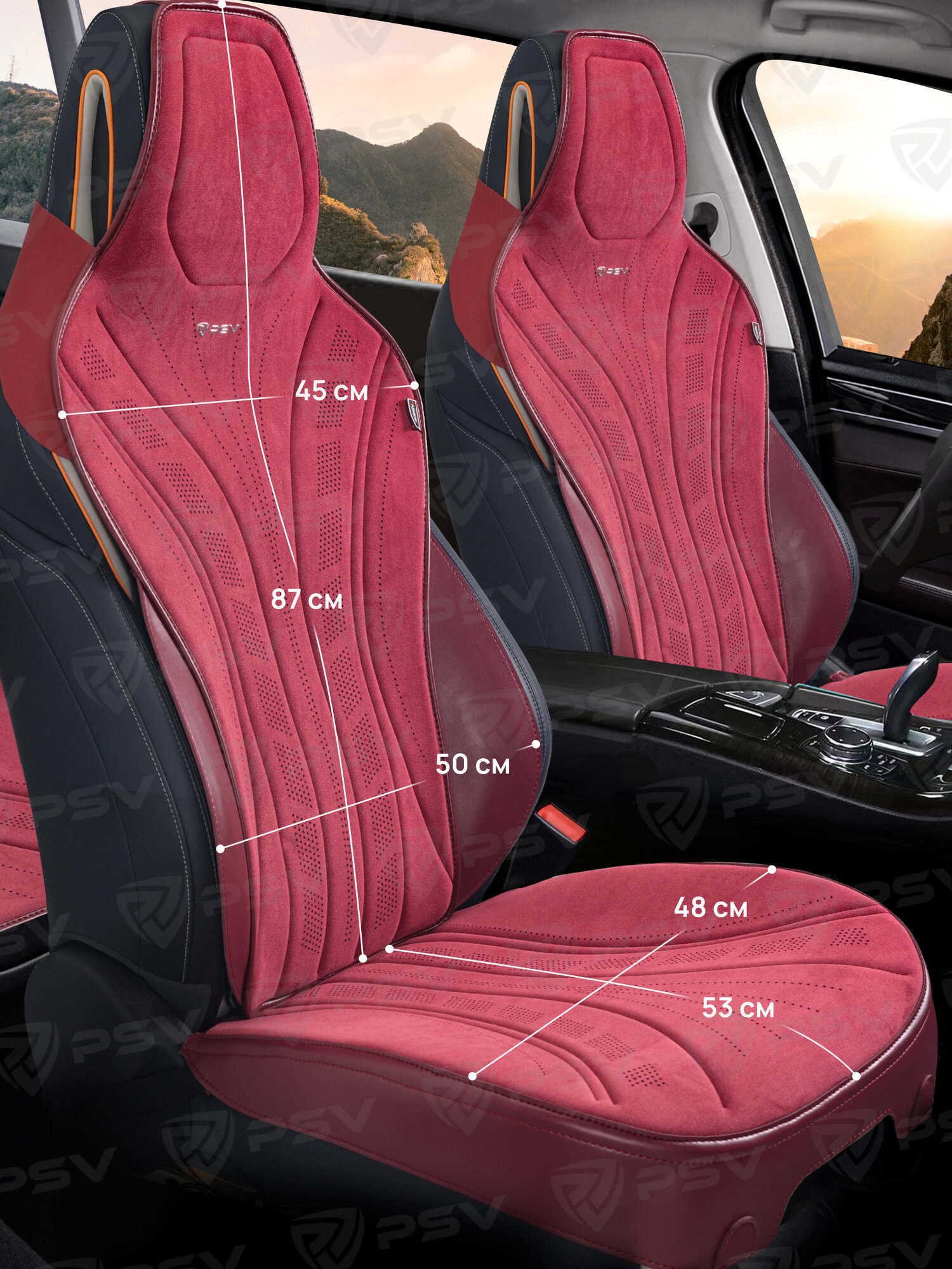 Купить Накидки чехлы на сиденья из алькантары в машину автомобильные универсальные на весь салон премиум PSV Uragan (Бордовый)