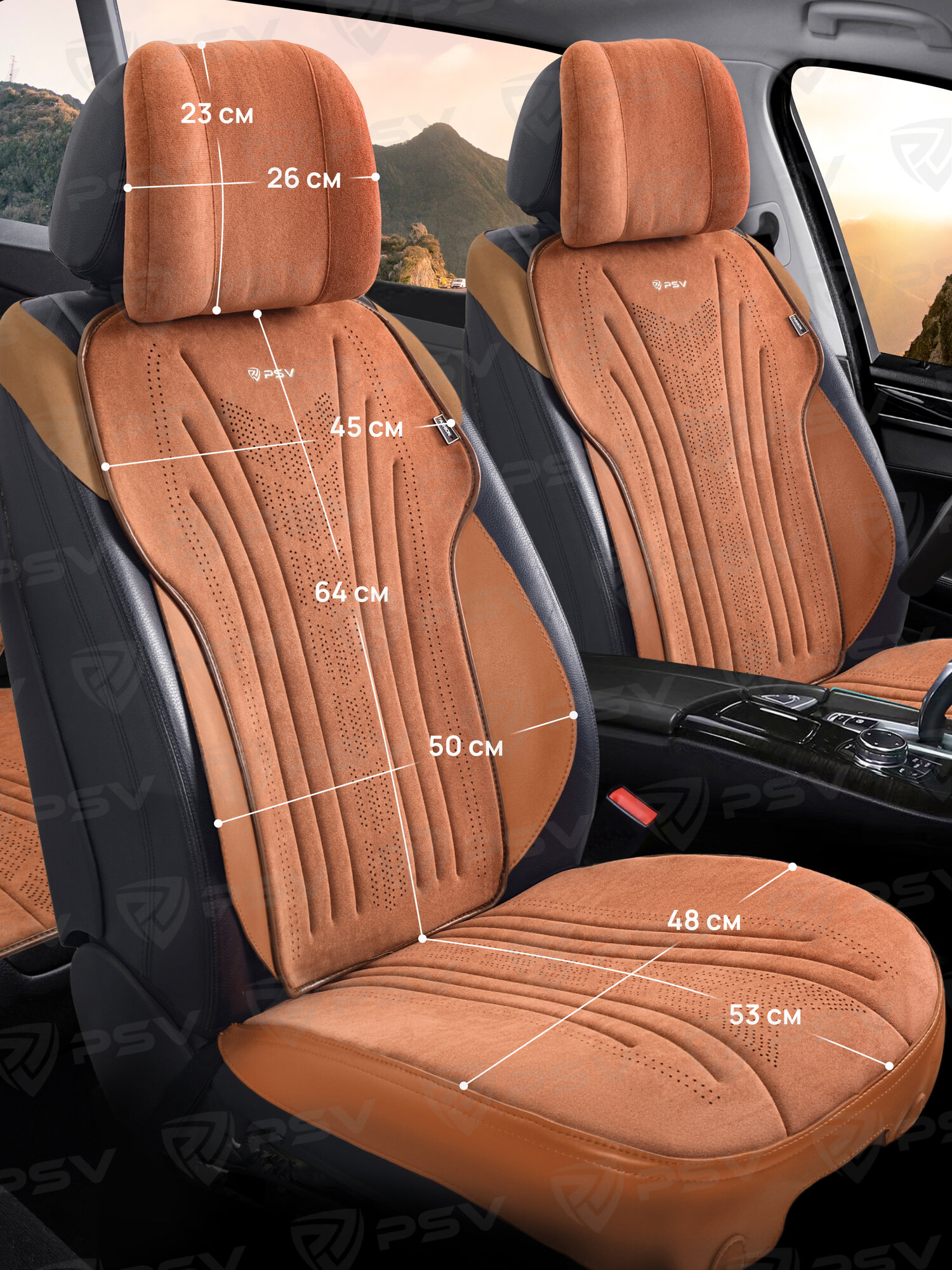 Купить Накидки чехлы на сиденья из алькантары в машину автомобильные универсальные на весь салон премиум PSV Tornado (Коричневый)