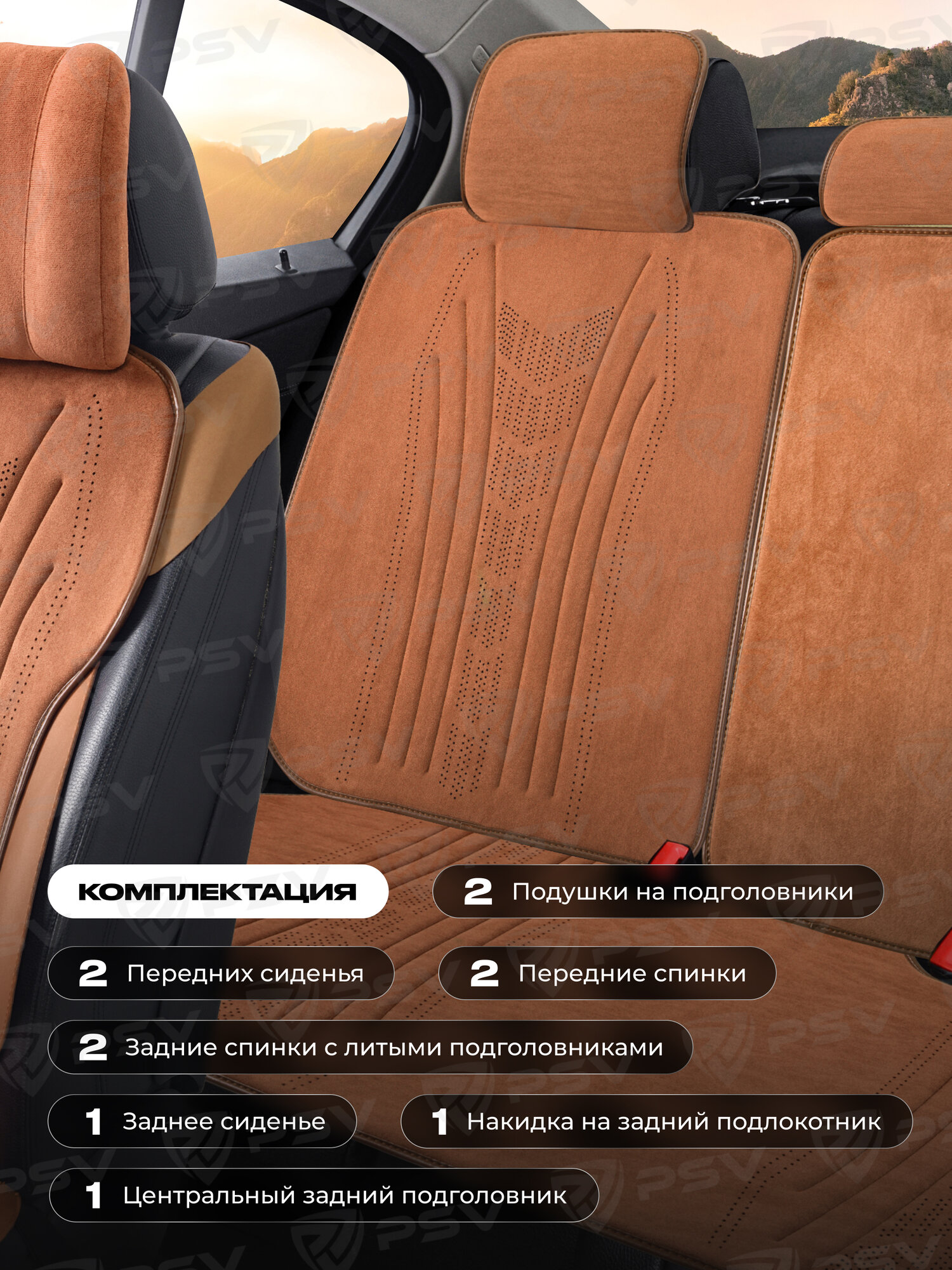 Накидки чехлы на сиденья из алькантары в машину автомобильные универсальные на весь салон премиум PSV Atom (Коричневый)