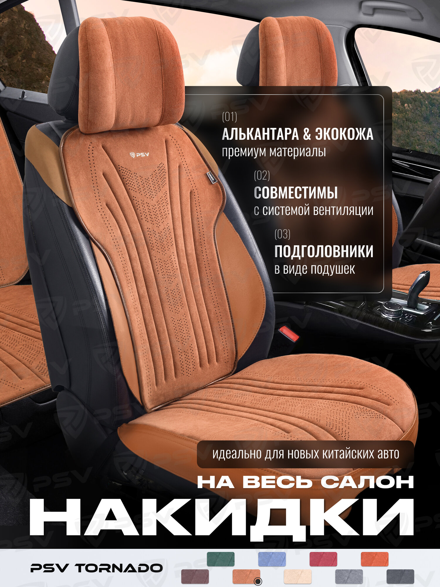 СохранитьНакидки чехлы на сиденья из алькантары в машину автомобильные универсальные на весь салон премиум PSV Tornado (Коричневый) интересное: