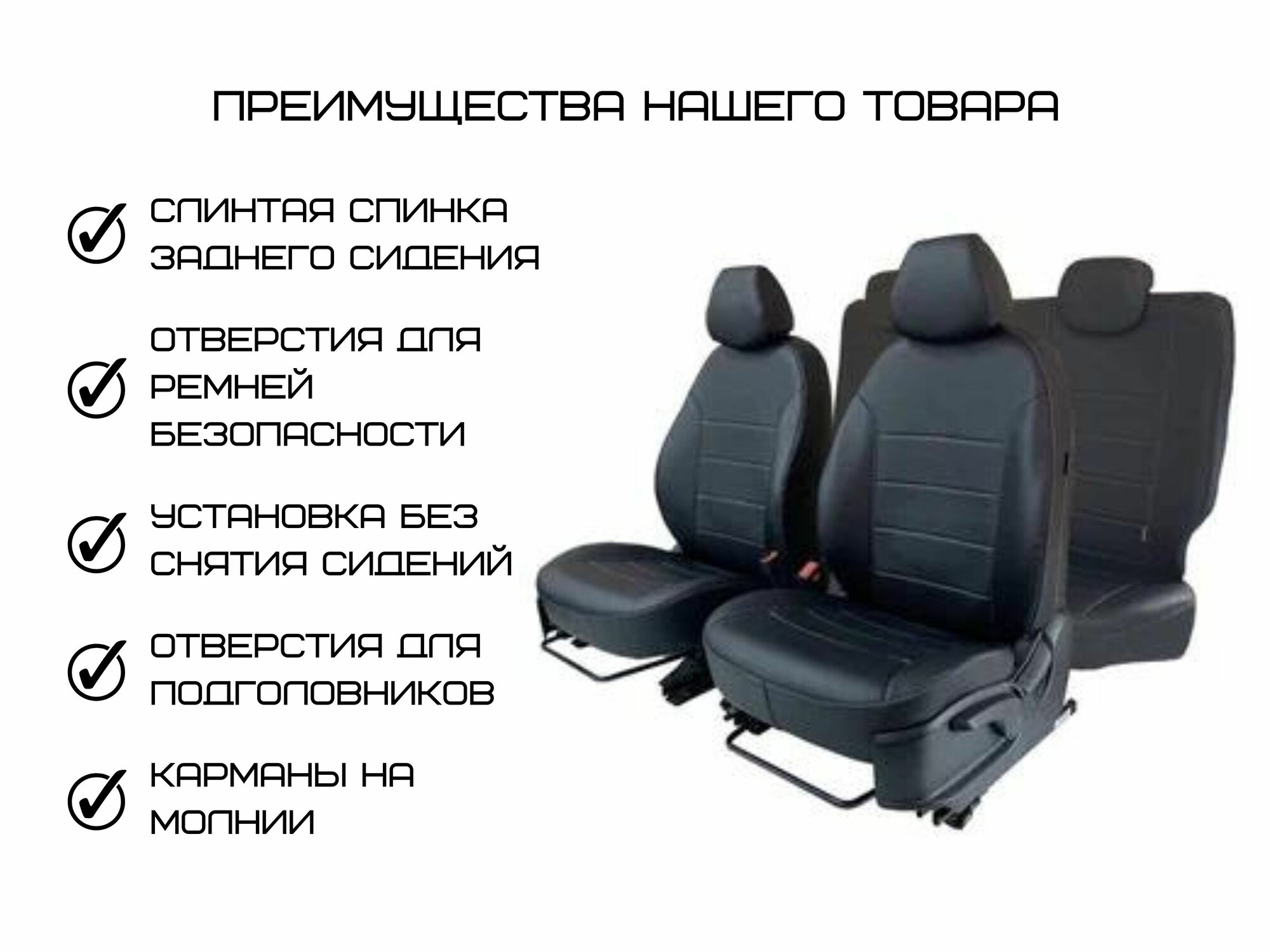 Чехлы для автомобильных сидений Лада Гранта / Lada Granta (2018-2023) Standard, Classik, Comfort, универсальная спинка заднего сидения. Экокожа. Авточехлы на весь салон