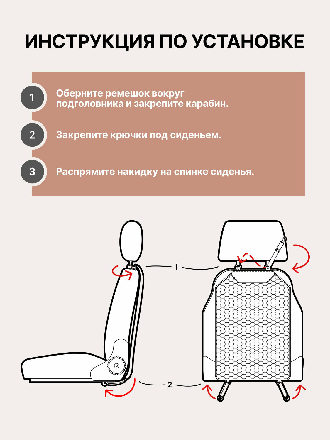 Накидка на спинку сиденья Owlee, премиум экокожа, коричневый, 1 шт