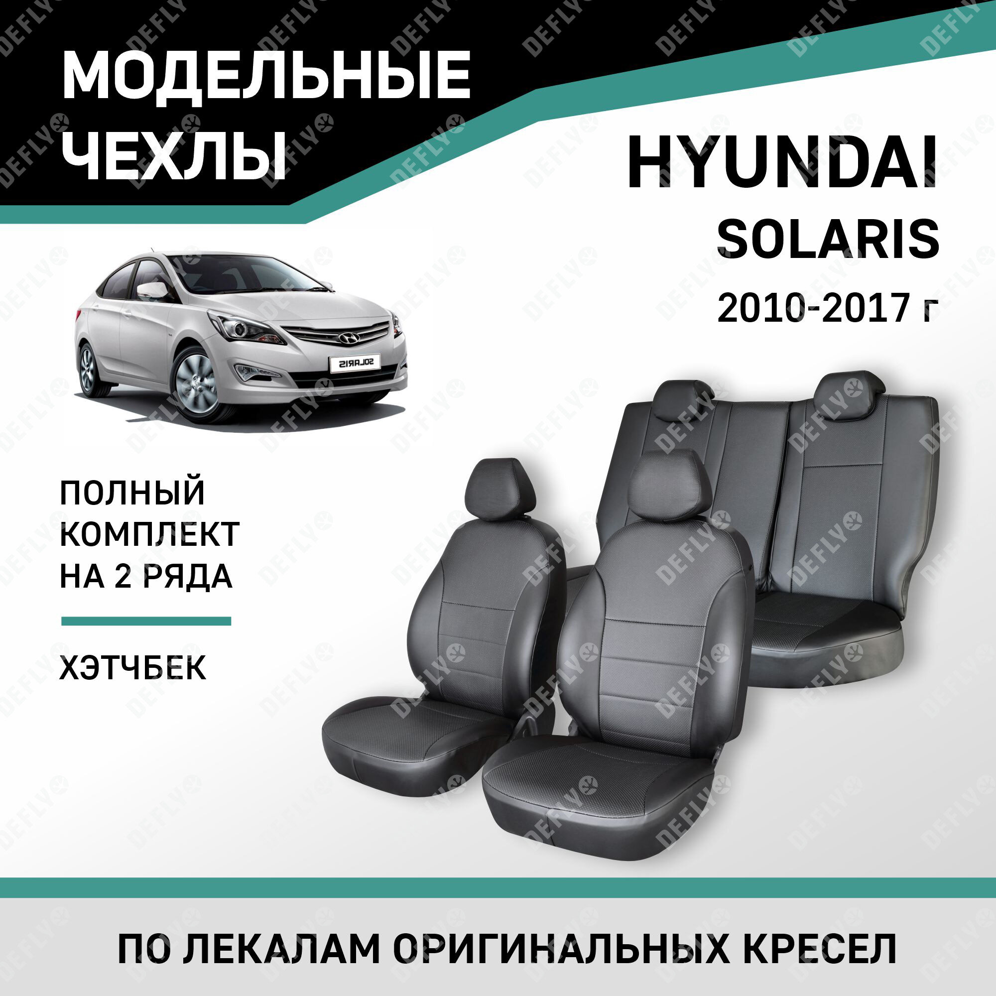 Купить Модельные чехлы на сиденья Defly Hyundai Solaris 2010-2017 хэтчбек Экокожа Черный