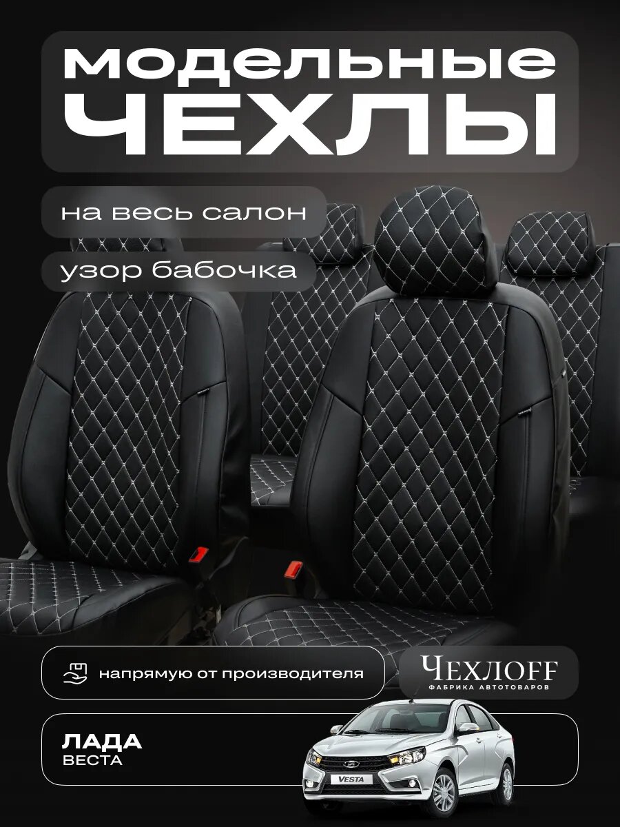 Чехлы ЧехлоFF для Лада Веста, экокожа, чёрно-белый, передние/задние, комплект интересное: