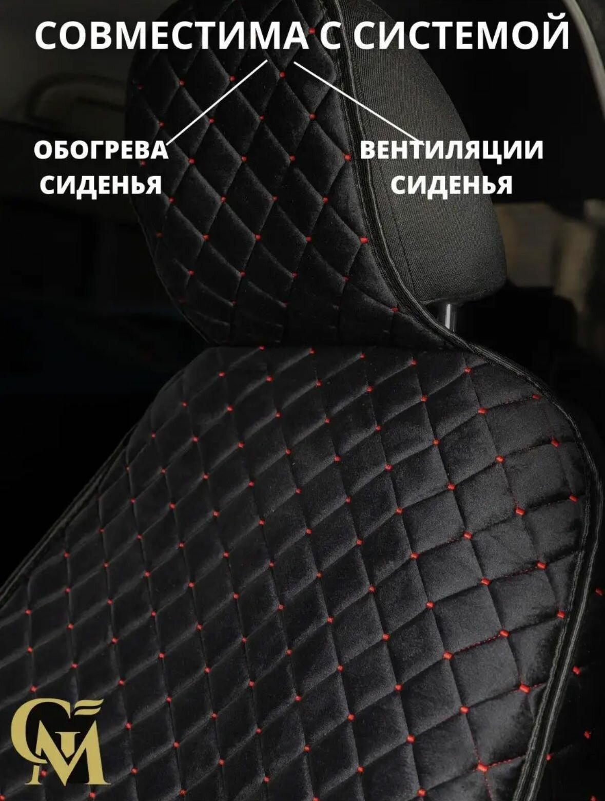 Накидка для передних сидений из велюра, черная с красными вставками интересное:
