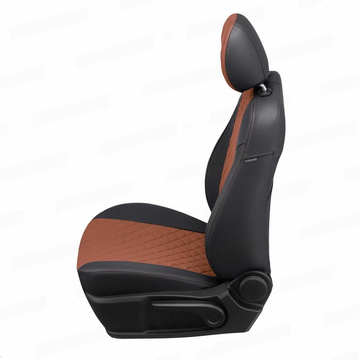 Чехлы на Фольксваген Тигуан 2 поколение (2017-2024) комплектация Комфортлайн, Хайлайн со столиками, без столиков для сиденья авто, Пилот, Экокожа с алькантарой ромб, Коричневый